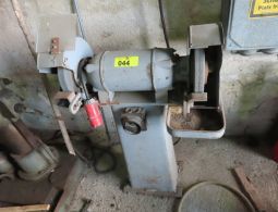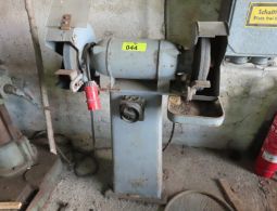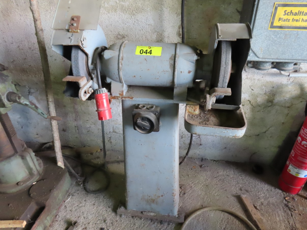 1 Doppelschleifbock, ständermontiert, nähere Daten nicht erkennbar, Schleifscheiben-Ø ca. 250 mm