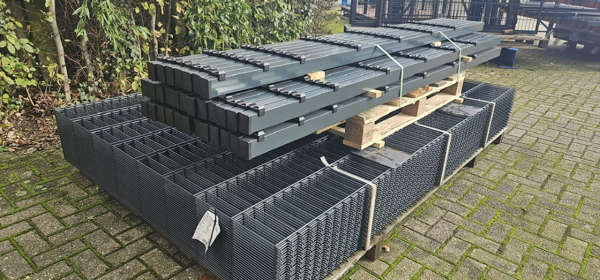 1 Komplettset-Zaunpaket, 75 m, RAL7016 anthrazitgrau, Höhe: 1830 mm, 30 Stück Doppelstabmatte B 2510 x H 1830 mm 6/5/6 mm MW 50 x 200 mm RAL7016, 31 Stück Zaunpfosten 60 x 40 x 2400 mm RAL7016, Bodeneinstand 600 mm, 31 Stück Hakenkappe, 124 Stück U-Bügelsets