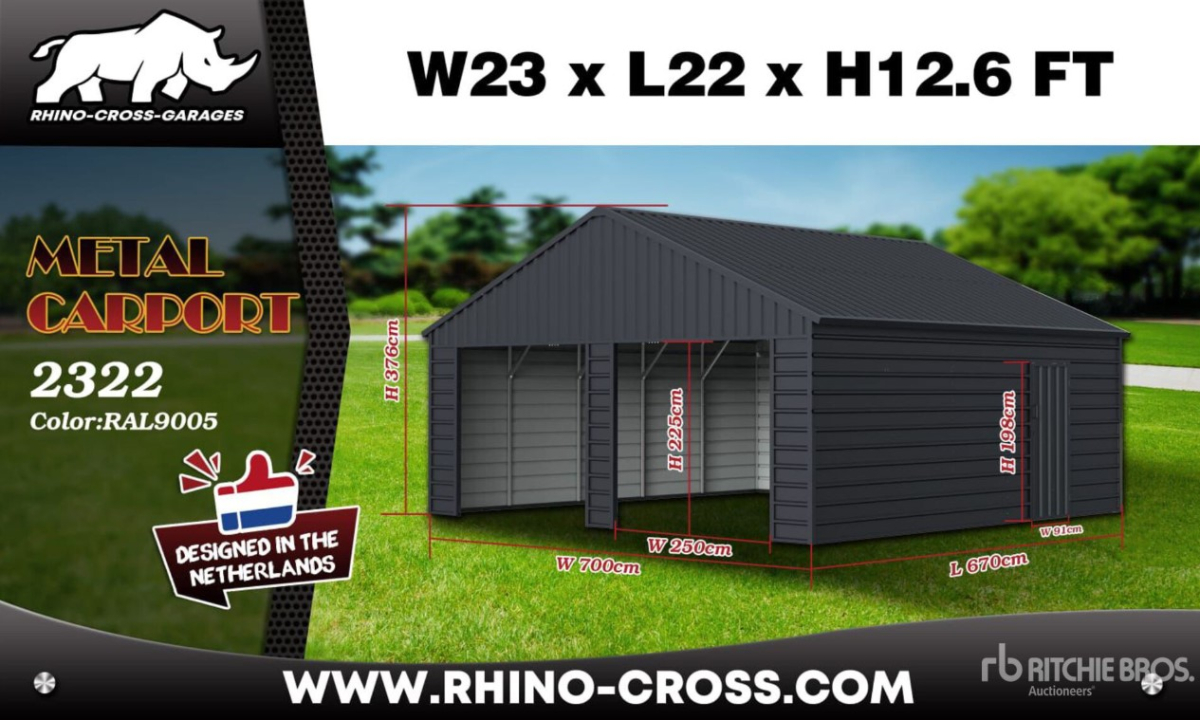Fertigteilhalle / Garage / Lager, Fabrikat: RHINO-CROSS, neu, Maße: 7,00 m x 6,70 m x 3,76 m
