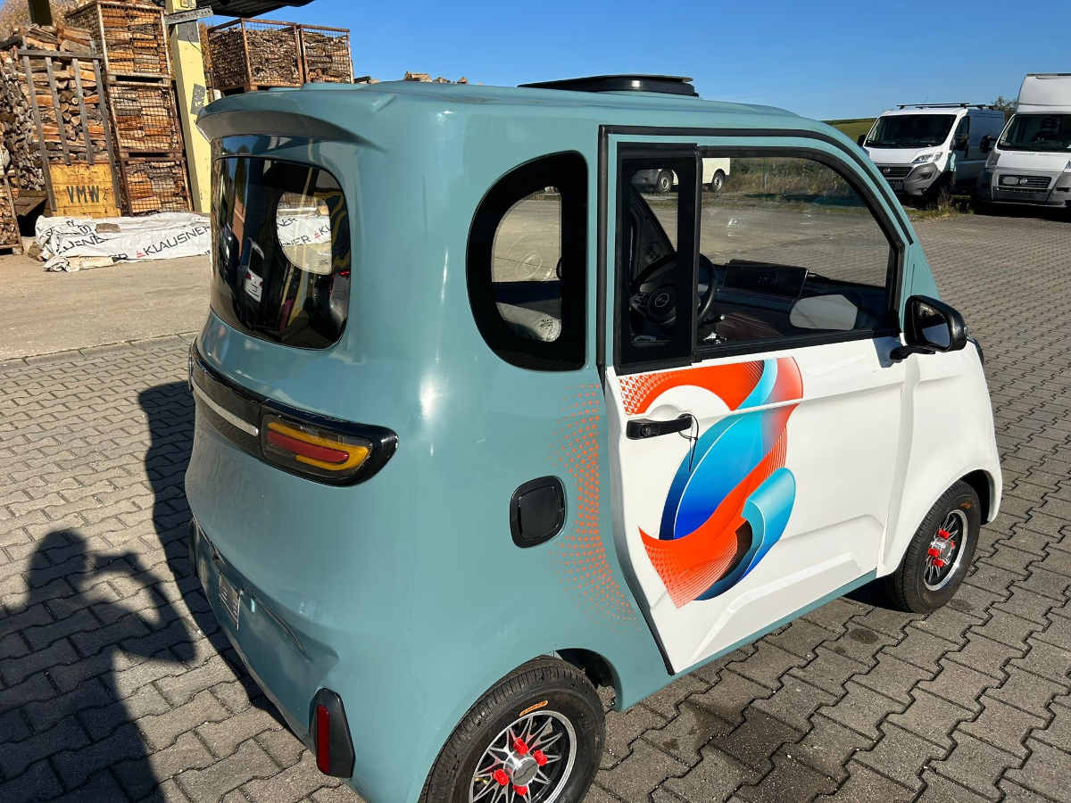 Mopedauto, Fabrikat: RCcar Industry, Produktion: 8/2024, neu, 45 km/h, Elektro 1.000 W, Gewicht: 300 kg, mit Rückfahrkamera und Dachluke - Das Fahrzeug hat diverse kleinere Transportschäden (siehe Bilder).