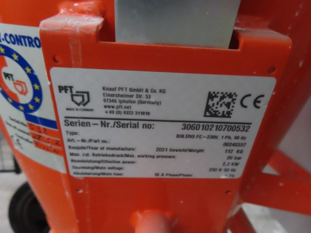 1 kombinierte Misch-, Pump- und Spritzmaschine, Fabr. Knauf PFT, Typ Bolero FC, Serien-Nr. 306010210700532, Baujahr 2021, 112 kg, 2,2 kW, 230 V, 20 bar, Antrieb fehlt