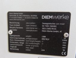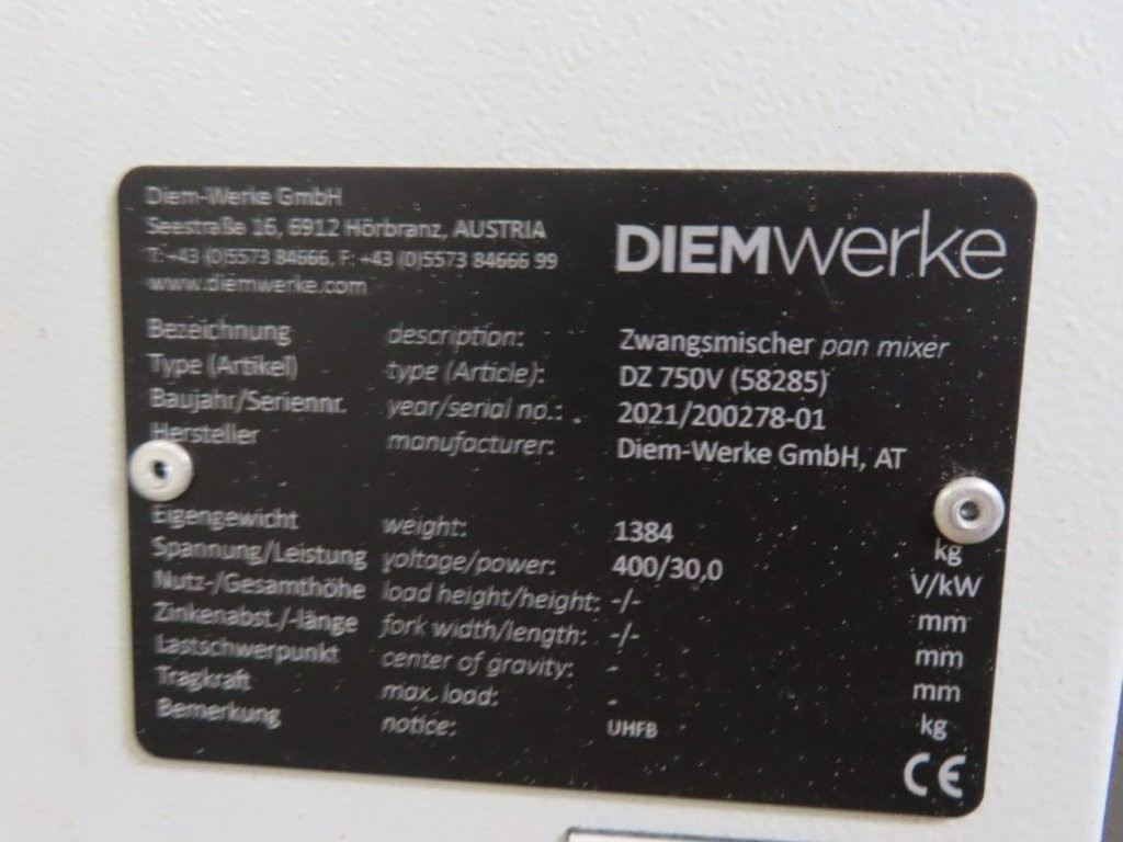 1 Zwangsmischer, Fabr. DiemWerke, Typ DZ 750V Ultra stationär, Serien-Nr. 200278-01, Baujahr 2021, Eigengewicht 1384 kg