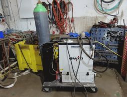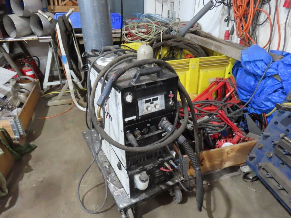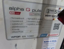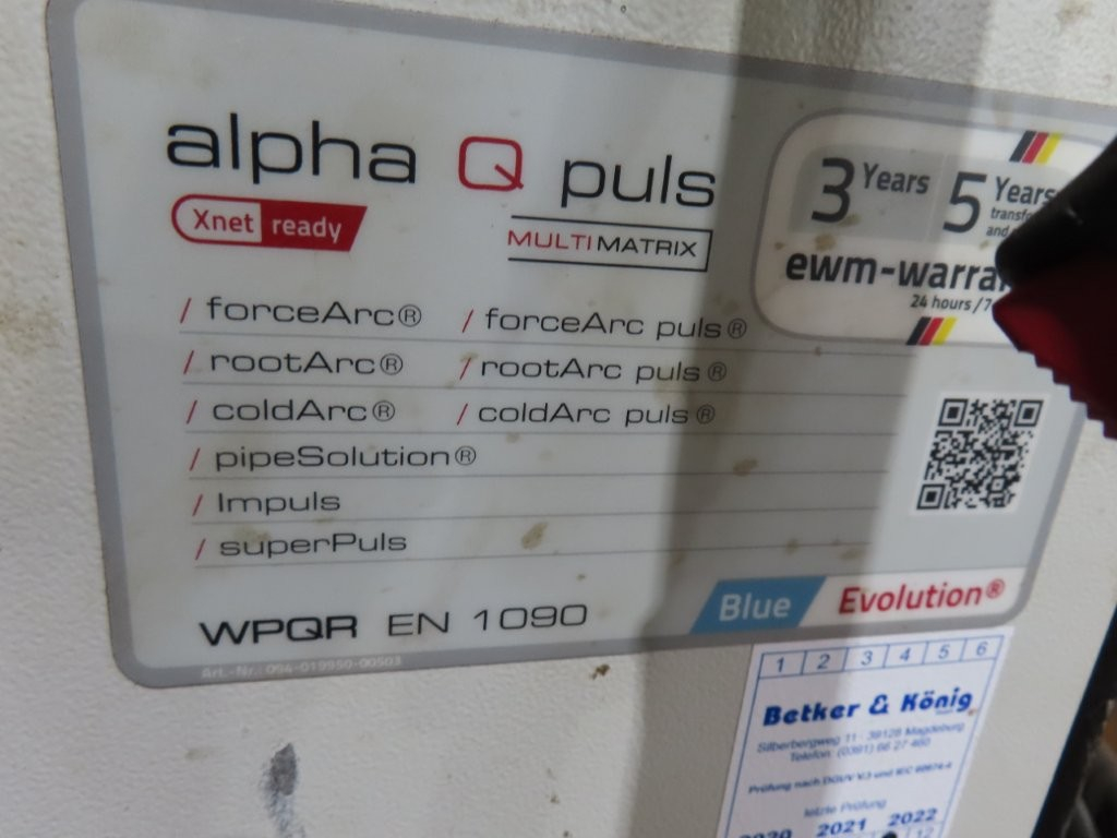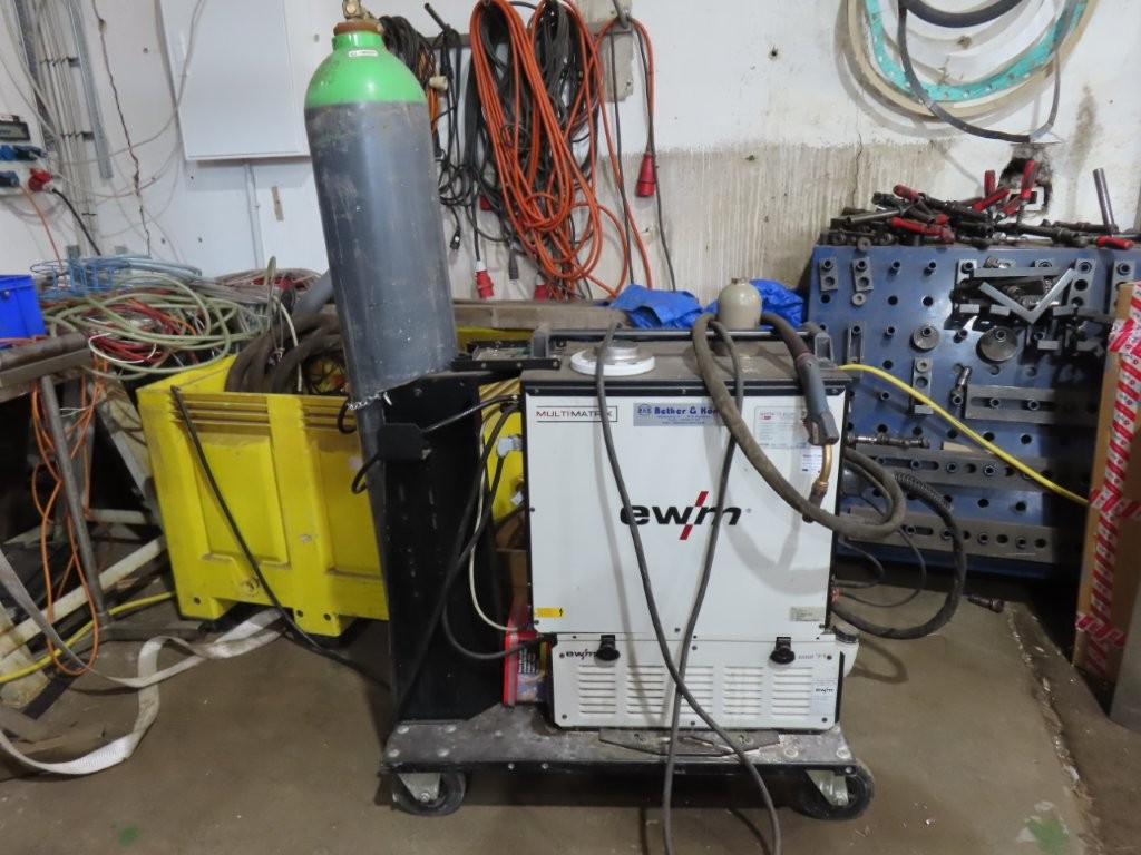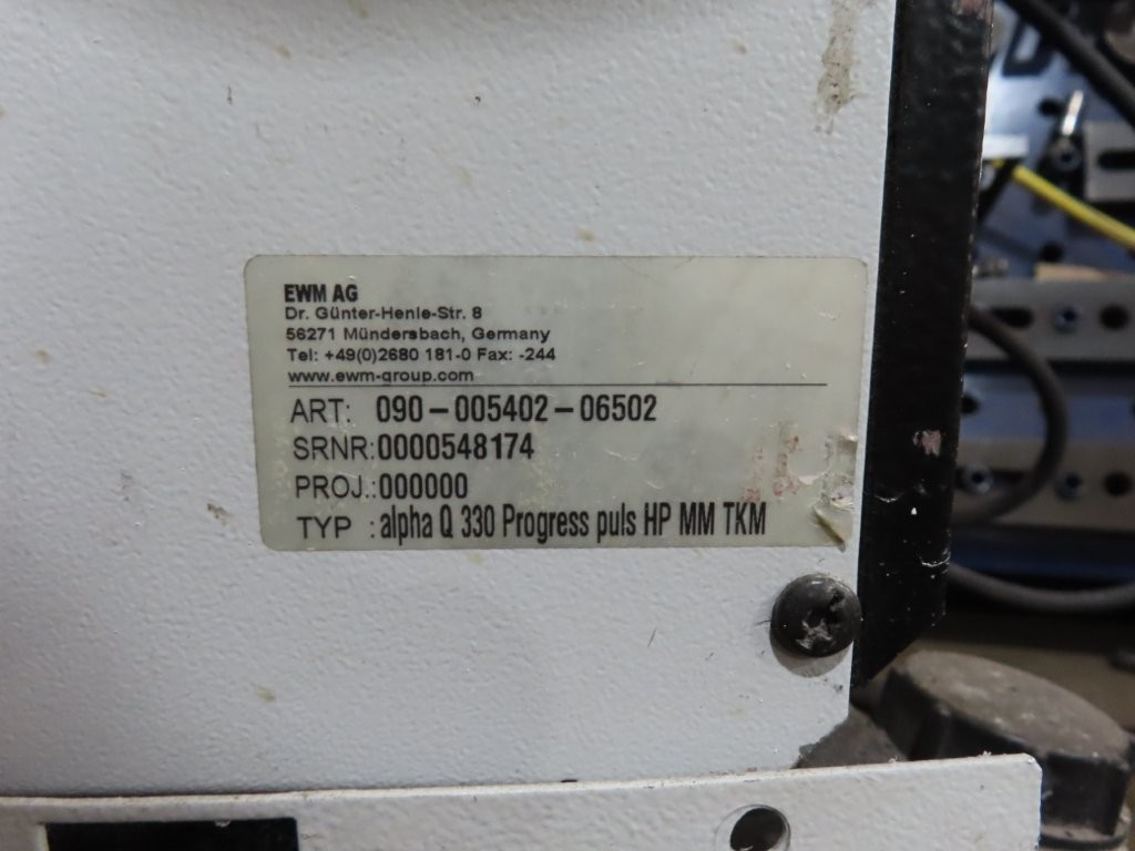 1 MIG/MAG-Multiprozess-Impulsschweißgerät, Fabr. EWM, Typ Multimatrix alpha Q 330 Progress puls HP MM TKM, Serien-Nr. 0000548174, mit Kühlgerät, Typ Cool 71 U43, Drahtvorschubgerät, Fabr. EWM, Typ miniDrive WS 10m 70qmm V+A, Schlauchpaket für wassergekühlte Brenner mit Volt- und Amperemeter in Kunststoffbox, gelb (Pos. 33)