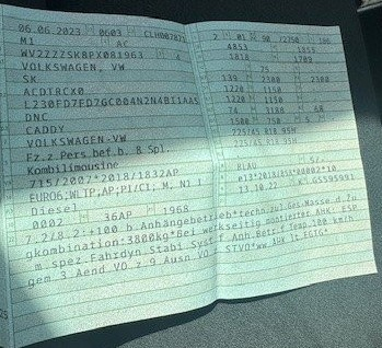 1 PKW, Fabr. VW, Typ Caddy Maxi Style; 2,0 TDI, Ident.-Nr. WV2ZZZSK8PX081963, Erstzulassung 06.06.2023, 90 kW, Diesel, Euro 6, 1968 cm³, Tacho-Stand: 104.431 km, TÜV bis 06/2026, Automatikschaltgetriebe, mit Anhängekupplung