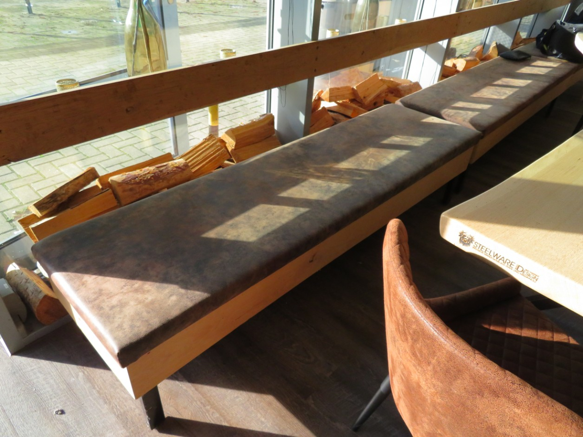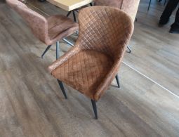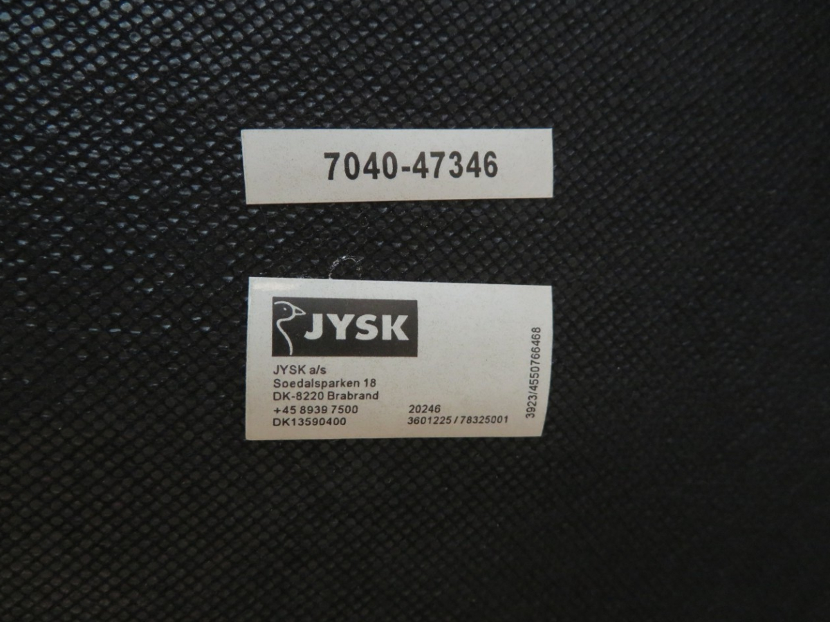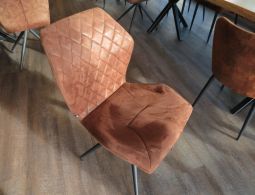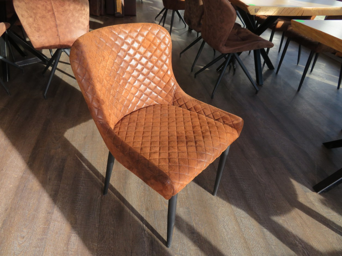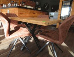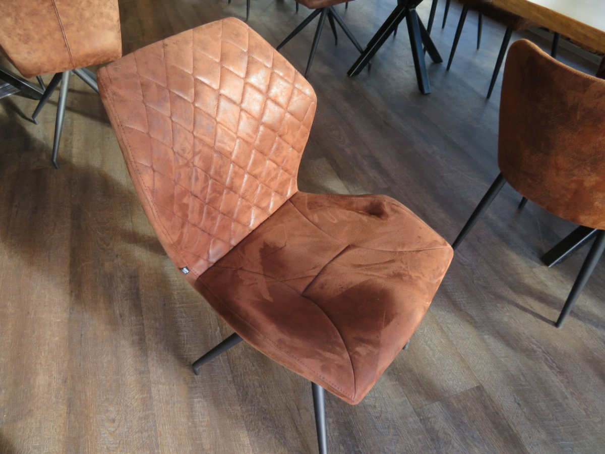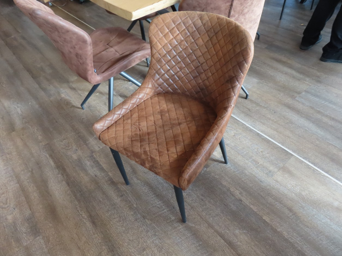 1 Posten Sitzmöbel, 45 Stühle und 4 Bänke, bestehend aus: 11 Stühlen, Fabr. Dami Living, Typ Rocky, Polyesterbezug/Velvet/Metallgestell schwarz matt und 34 Stühlen, Fabr. Jysk, Typ PEBRINGE Antikbraun/Stahlrohrgestell schwarz, 3 Sitzbänke, á ca. 2 m x 0,55 m x 0,44 m und 1 U-Sitzbank, ca. 4,80 m x 0,55m x 0,44 m, Holzgestell/Stoffbezug Wildlederoptik, mit integrierten Rückwänden, zum Teil demontiert