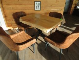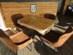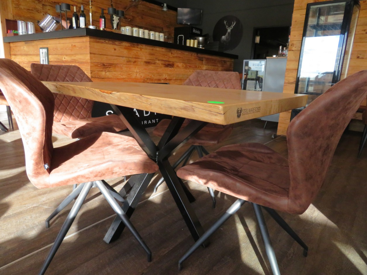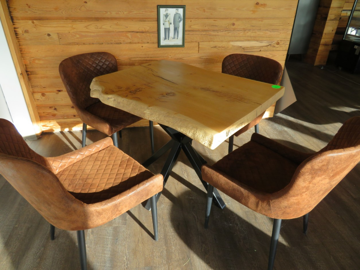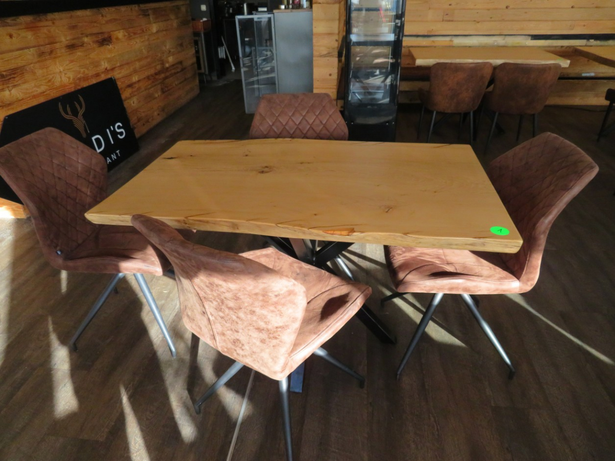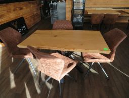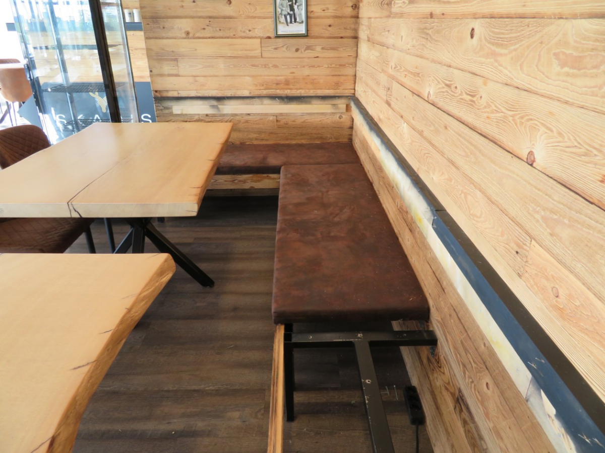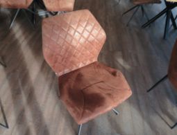 1 Posten Sitzmöbel, 45 Stühle und 4 Bänke, bestehend aus: 11 Stühlen, Fabr. Dami Living, Typ Rocky, Polyesterbezug/Velvet/Metallgestell schwarz matt und 34 Stühlen, Fabr. Jysk, Typ PEBRINGE Antikbraun/Stahlrohrgestell schwarz, 3 Sitzbänke, á ca. 2 m x 0,55 m x 0,44 m und 1 U-Sitzbank, ca. 4,80 m x 0,55m x 0,44 m, Holzgestell/Stoffbezug Wildlederoptik, mit integrierten Rückwänden, zum Teil demontiert