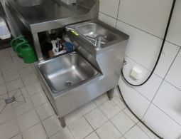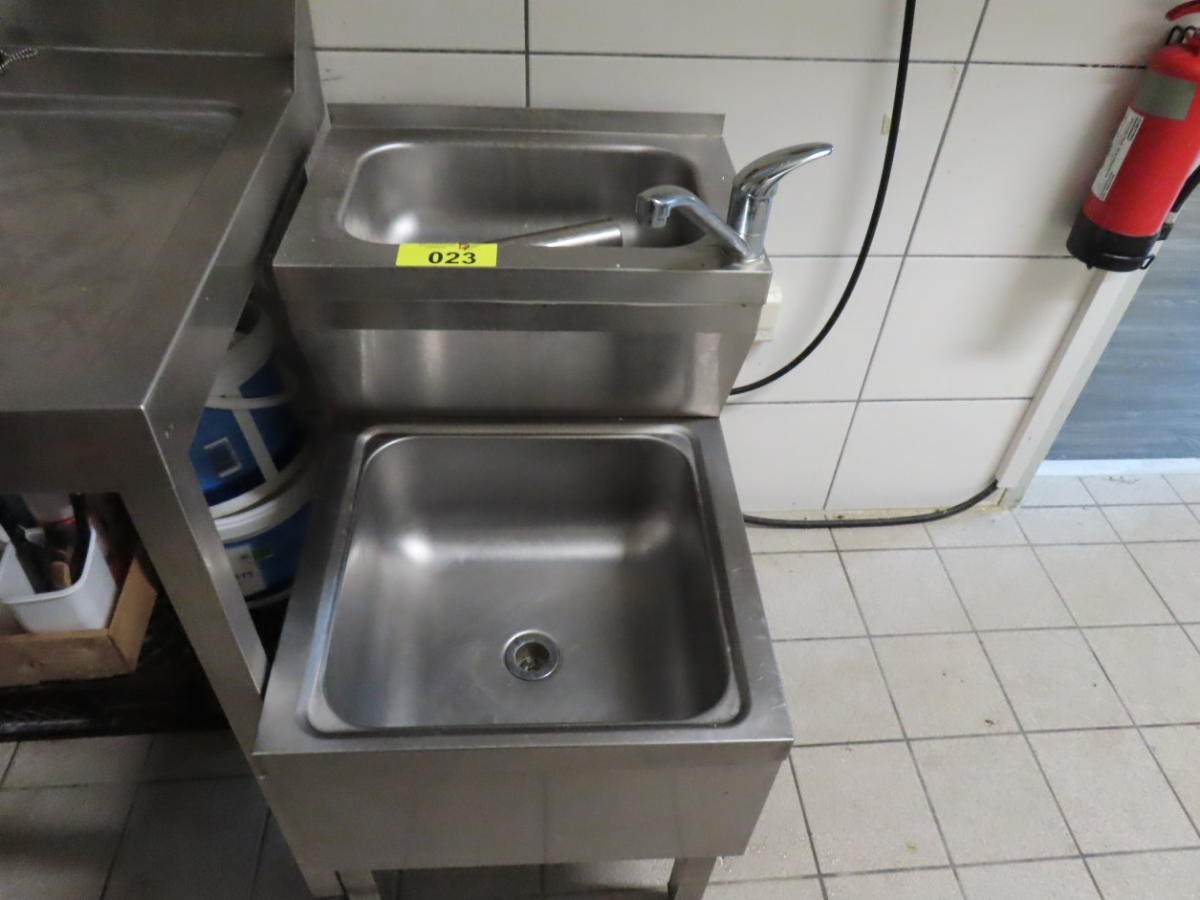 1 Handwaschbecken-/Ausgusskombination mit Aufkantung, Edelstahl