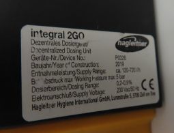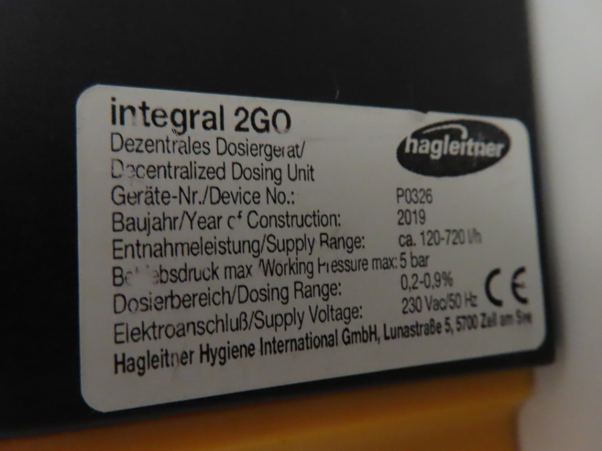 1 Reinigungsmittel-Dosiersystem, Fabr. Hagleitner, Typ integral 2GO, Baujahr 2019, 3 -teilig, ca. 120-720 l/h Entnahmeleistung, 5 bar, wandmontiert