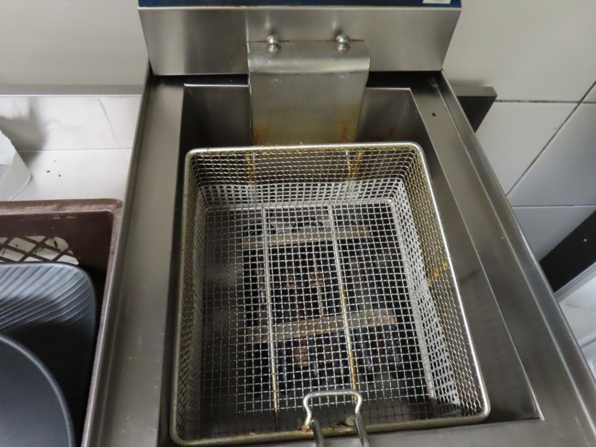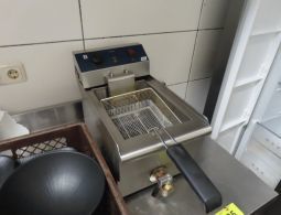 1 Edelstahl-Fritteuse, Fabr. GGG, Inhalt ca. 10 -14 Liter, mit Ablasshahn