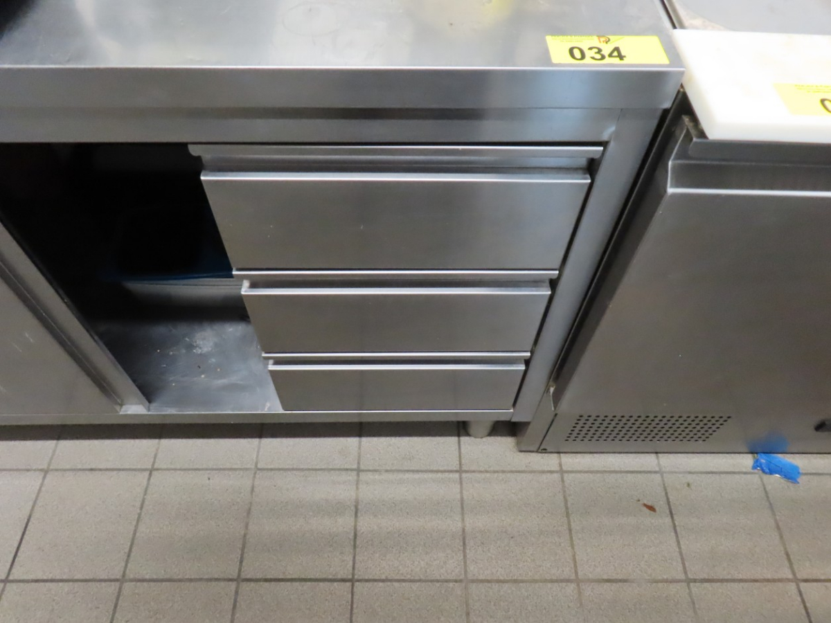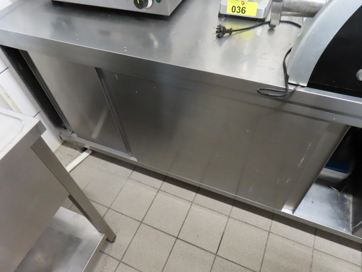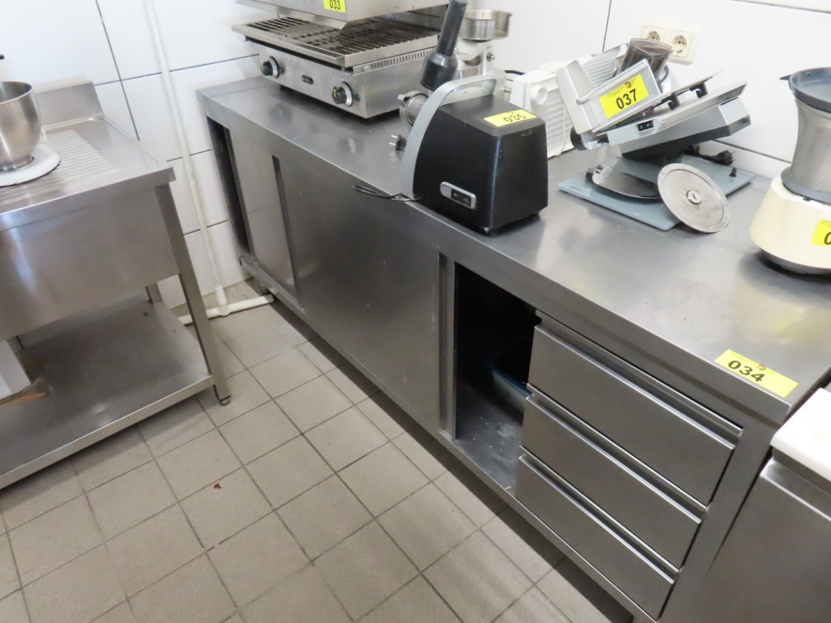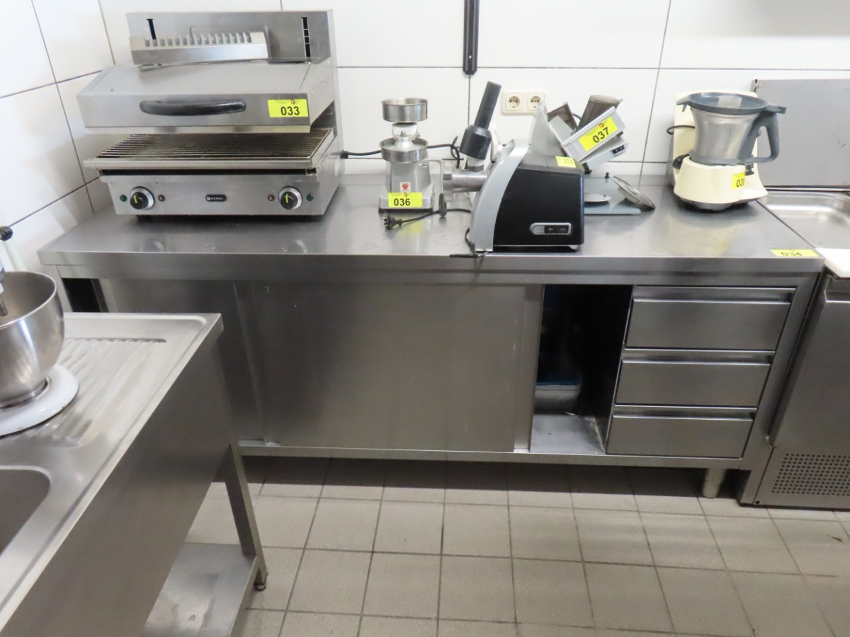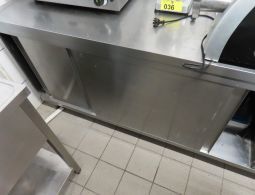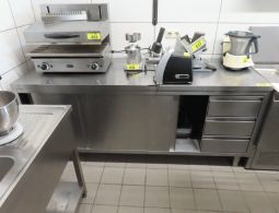 1 Edelstahl-Arbeitsschrank mit 3 Auszügen und 2 Schiebetüren, 2 m breit