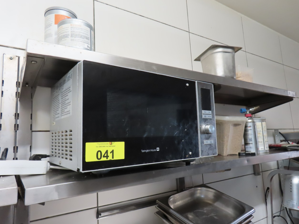 1 Mikrowelle, Fabr. Tarrington House, Edelstahlausführung, 25 Liter, 1.400 W, verschmutzt