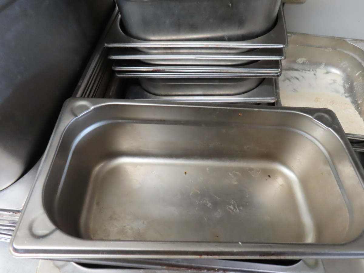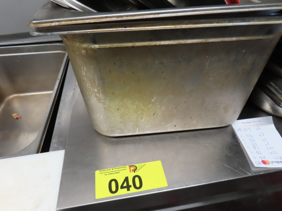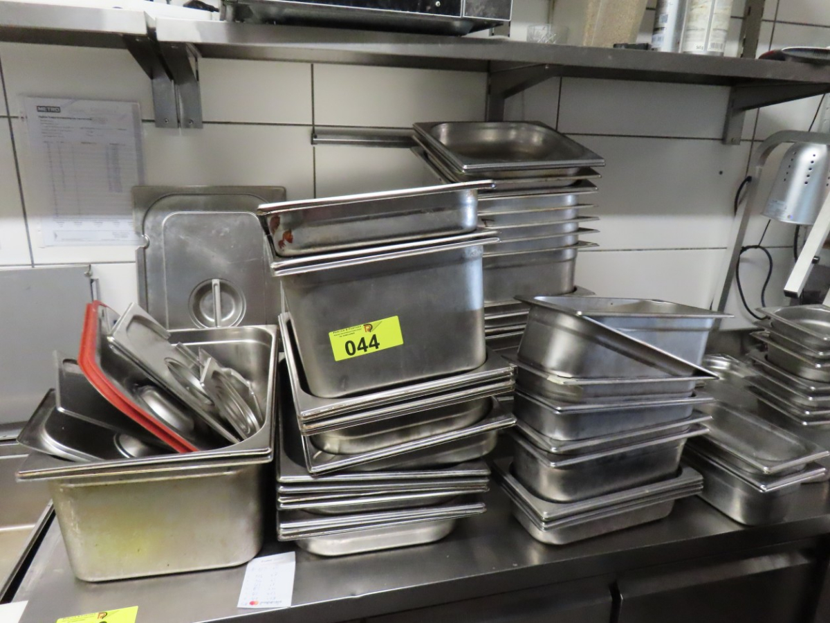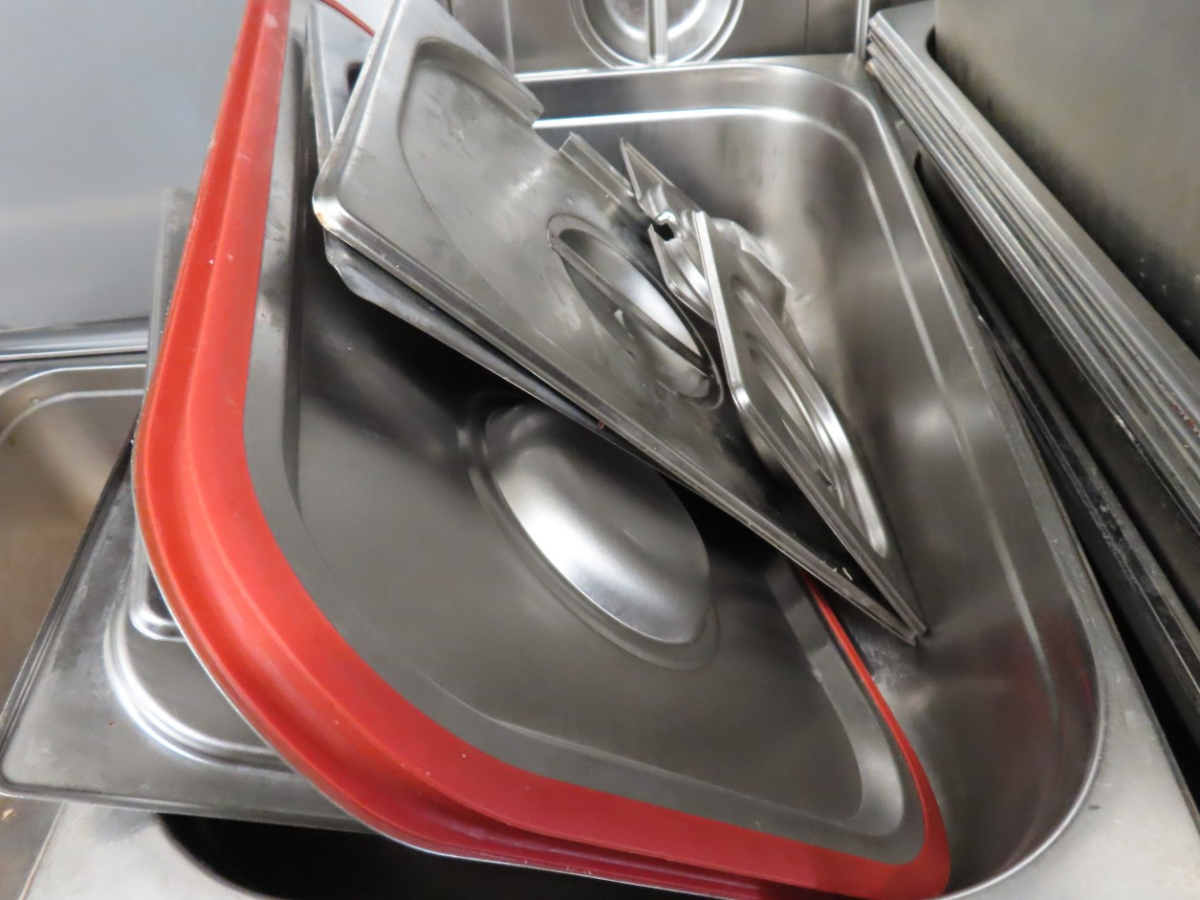 1 Posten Edelstahl-GN-Behälter, ca. 80 Teile, bestehend aus: 6 x 1/9 GN, 7 x 1/6 GN, 3 x 1/4 GN, 1 x 2/3 GN, 11 x 1/3 GN, 23 x 1/2 GN, 28 x 1/1 GN, zum Teil mit Deckeln