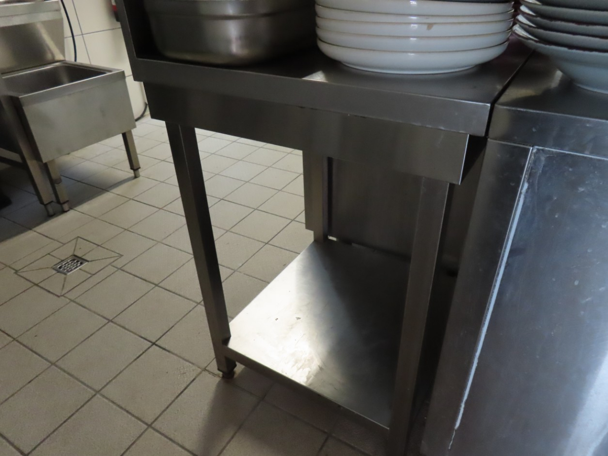 1 Edelstahl-Ablagetisch mit Aufkantung und Ablage, ca. 0,60 m breit x 0,60 m tief