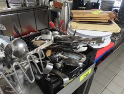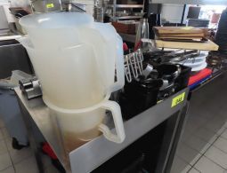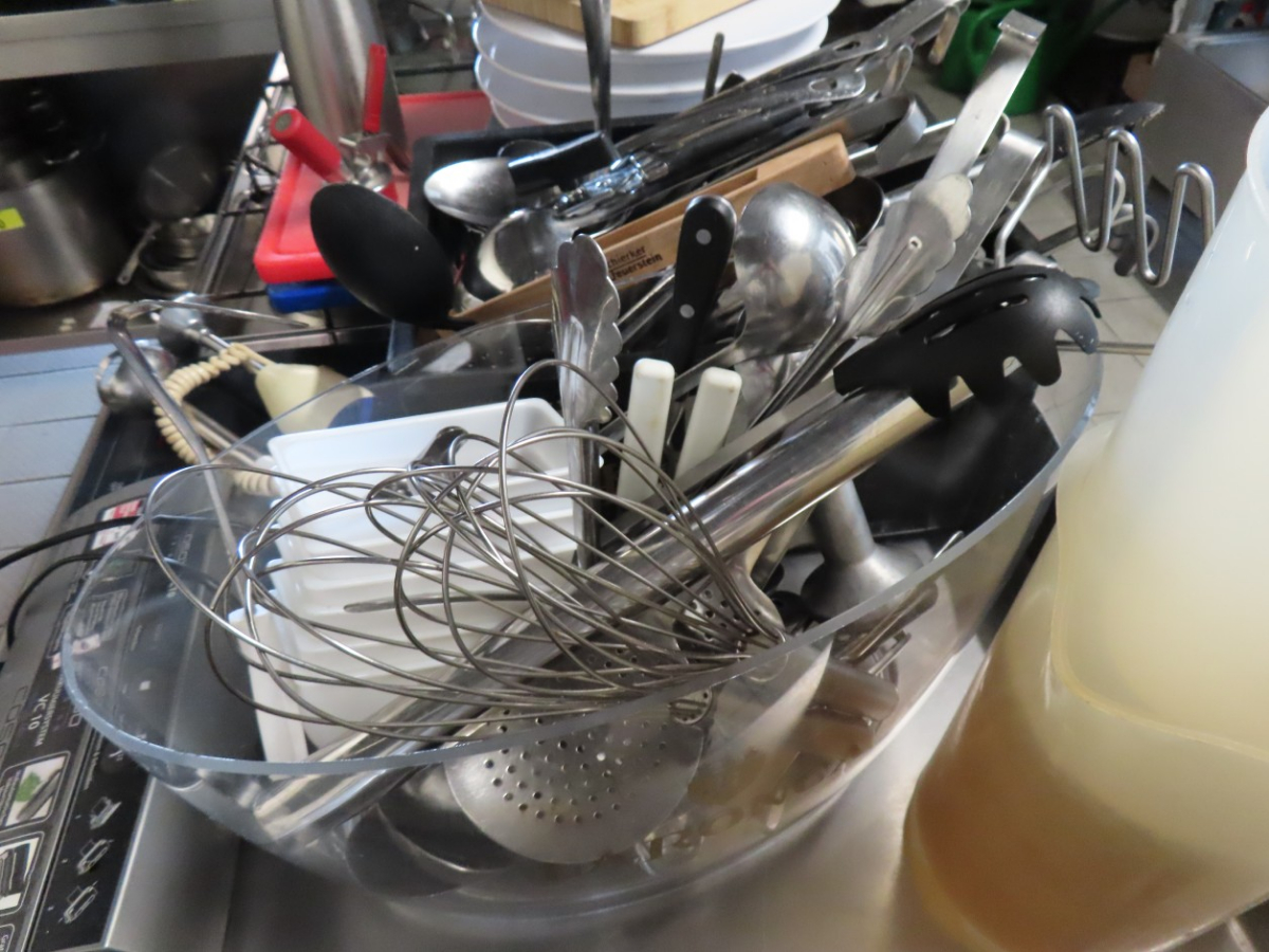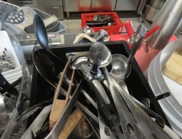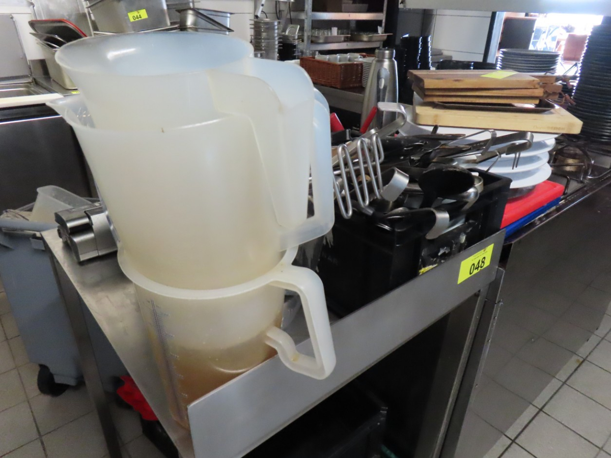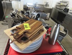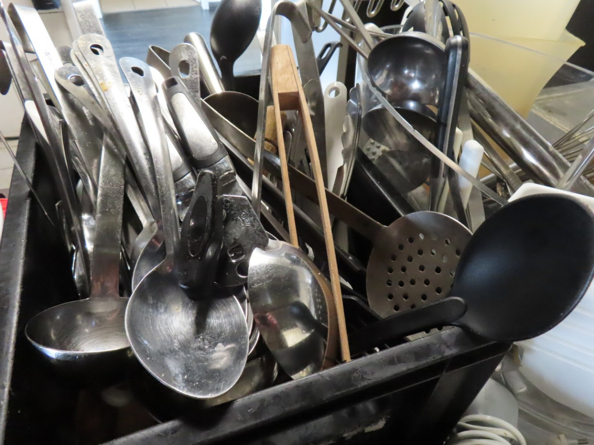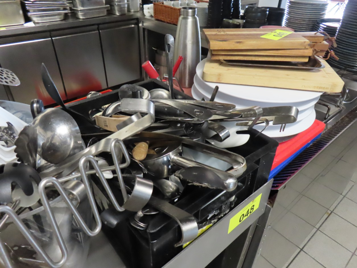 1 Posten Küchenutensilien, bestehend aus: Schaumkellen, Löffeln, Dosenöffnern, Stampfern, Schneebesen, Zangen, Kellen, Pfannenwendern, Handmixern, Küchenwaagen, Vakuumiergerät, Fabr. Caso, Typ VC 10, Schneidebrettern, Sahne-Siphon, Fabr. iSi, Eiswürfelbereiter, Kuchenrolle, Handmixer, Messbechern, etc.