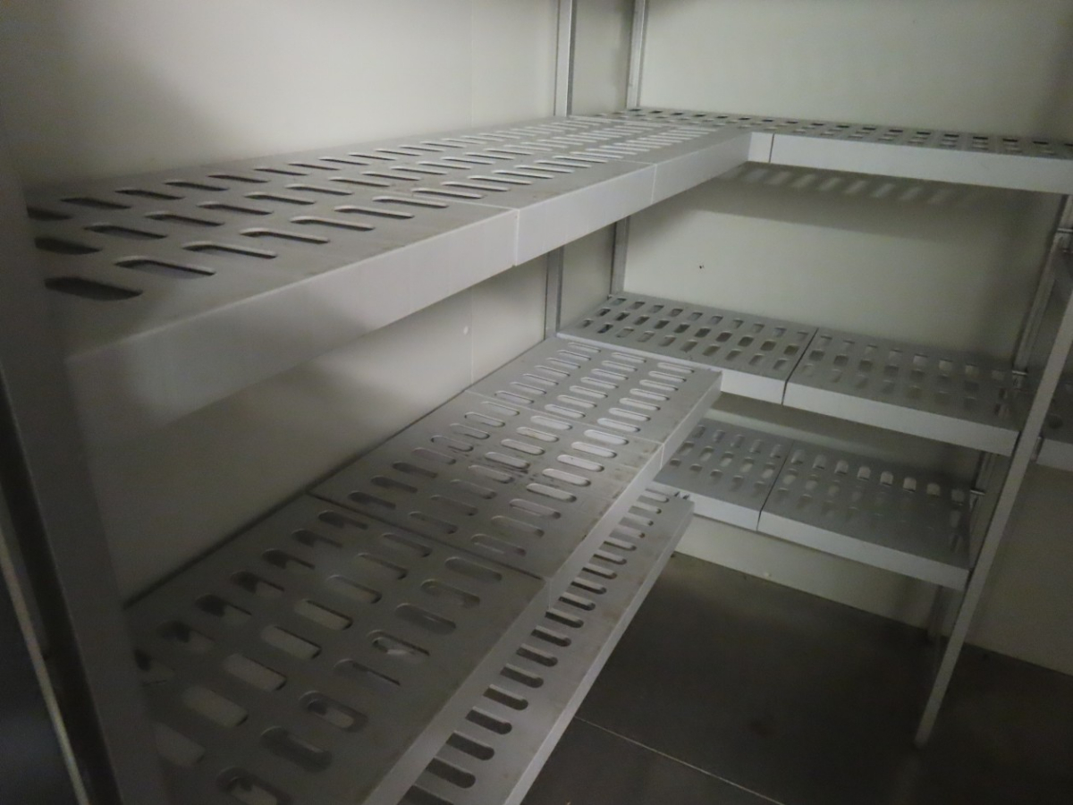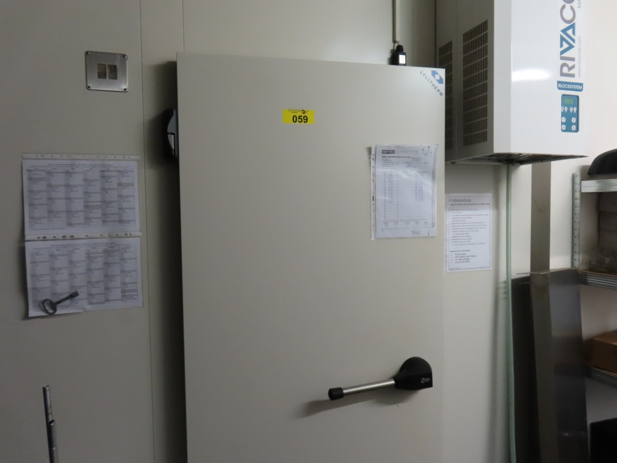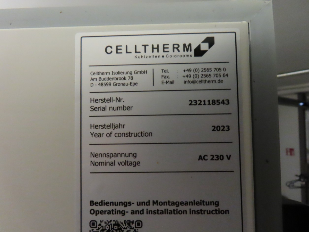1 Kühlzelle, Fabr. Celltherm, Serien-Nr. 232118543, Baujahr 2023, mit Kühlregal, U-Form, Kühlaggregat, Fabr. Rivacold, Maße: Höhe 2,55 m, Breite 1,91 m, Tiefe 1,90 m