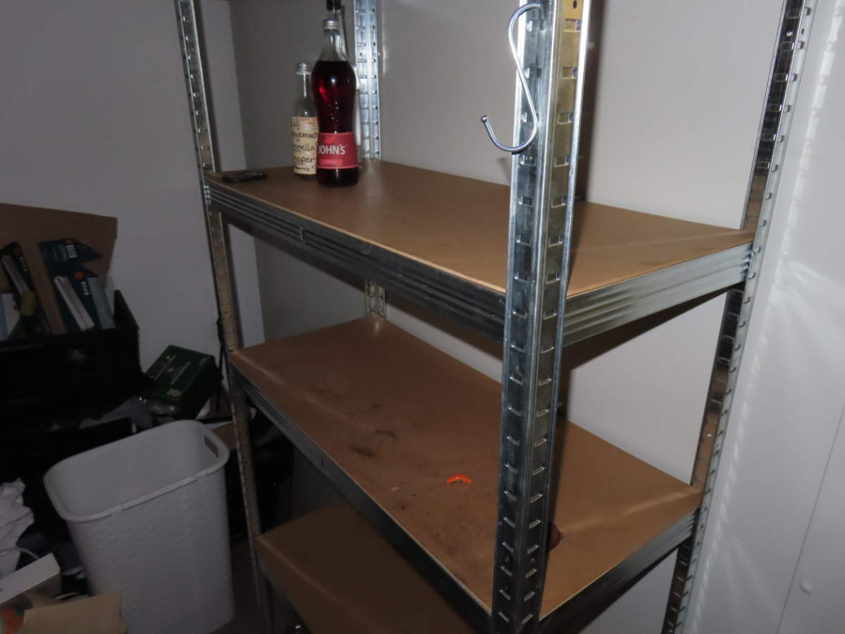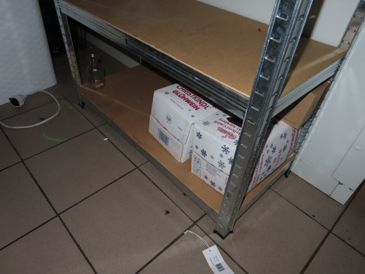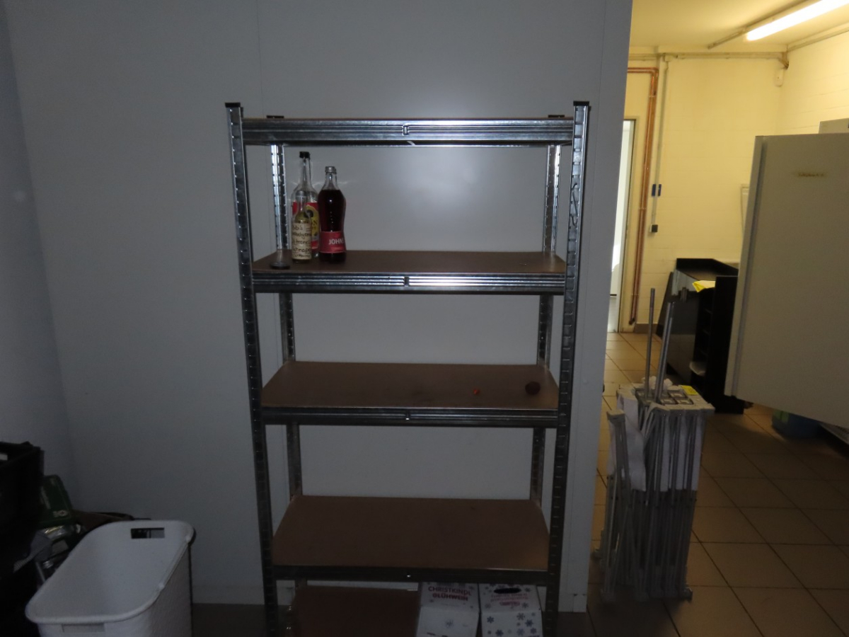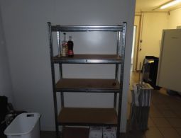 1 Metall-Steckregal, einfach, ca. 1,80 m x 0,80 m, Spanholzböden
