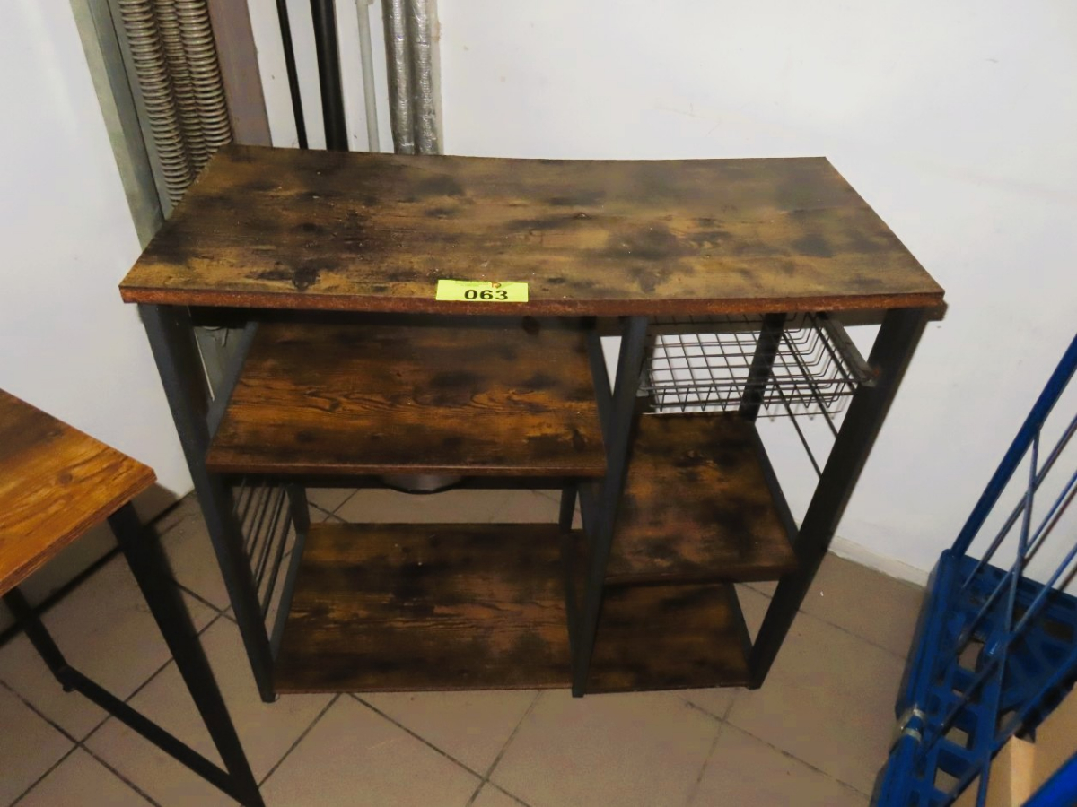 1 Sideboardregal, leicht deformiert, 3-etagig, ca. 0,80 m x 1 m, Holzoberfläche/Metallgestell