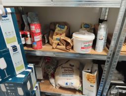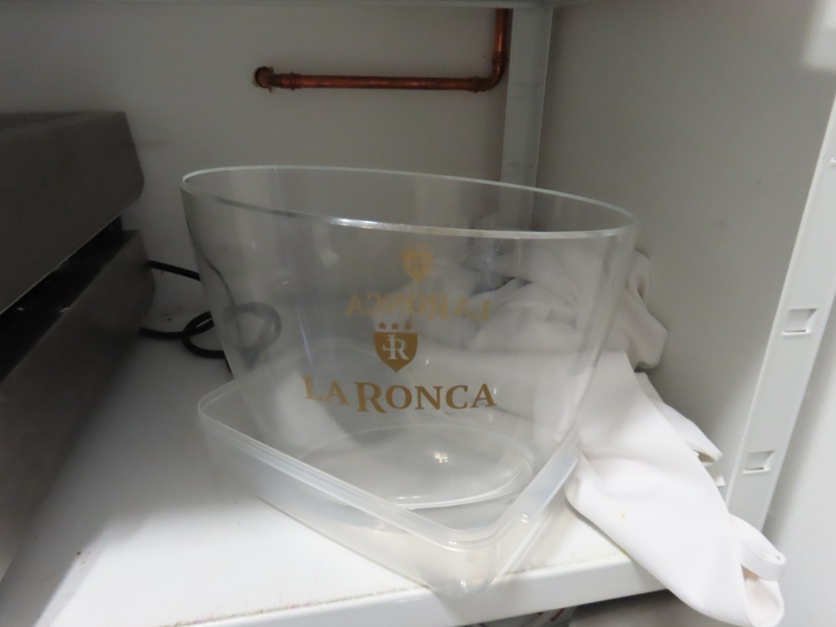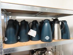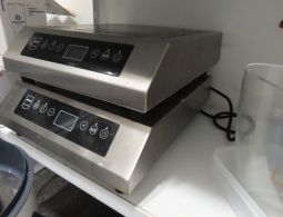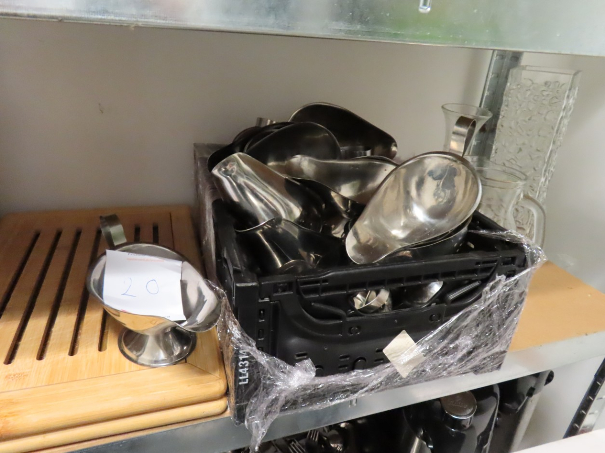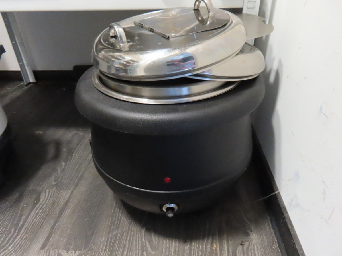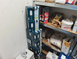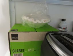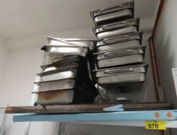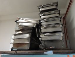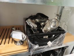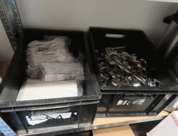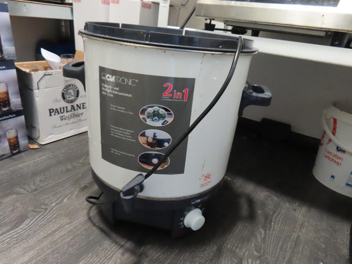 1 Rauminhalt, bestehend aus: 3 Steckregalen, Metall, mit Inhalt: 5 Cafing-Tischgeräte, 6 x Brennpaste, 1 elektrischer Insektenvernichter, Metall, 2 Toaster, Fabr. Westinghouse (4 Slice Toaster), Backpapier, Servietten, Kaffeefilter, diverse Servierkörbe, Catering-Beschriftungsschilder, 26 Spiral-Eierbecher, 2 Induktions-Kochfelder, Fabr. Metro, 1 elektrischer Suppentopf, 1 Heiß-Getränkeautomat, Fabr. Clatronic, EKA 3338, 25 Liter, 1 Posten Gläser, 179 Stück (32 Paulaner Weißbiergläser im Karton, 24 Wassergläser, Aufschrift: Vaihinger, 12 Longdrinkgläsern Pasabahce Timeless 52800 450ml Clear, 10 Weißweingläser, Fabr. Schott Zwiesel, 5 Weißbiergläser Paulaner, 6 Mehrzweckgläser, Aufschrift: Schweppes 0,2 l, 24 Coca-Cola Gläser, 6 Gläser Aufschrift: S, 60 Sektgläser Metro Aveiro Crystalline professional 20 cl), 14 Thermoskannen, Aufschrift: Azul Cafe, 20 Saucieren, Edelstahl, diverses Besteck, bestehend aus: Löffeln, Gabeln, Messern, 3 Pumpkannen Aufschrift: Tchibo, 1 Posten Lebensmittel (Semmelbrösel, Erdnüsse, Tomaten in Dosen, Sahne, Soßenbinder, Kakaopulver, Backpulver, Gelatine, etc.) zum Teil größten Teil angebrochen