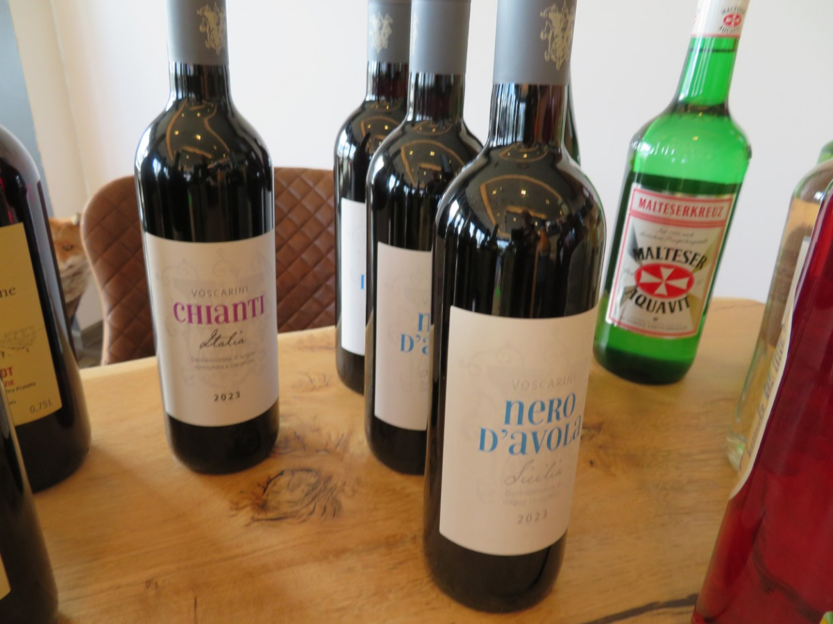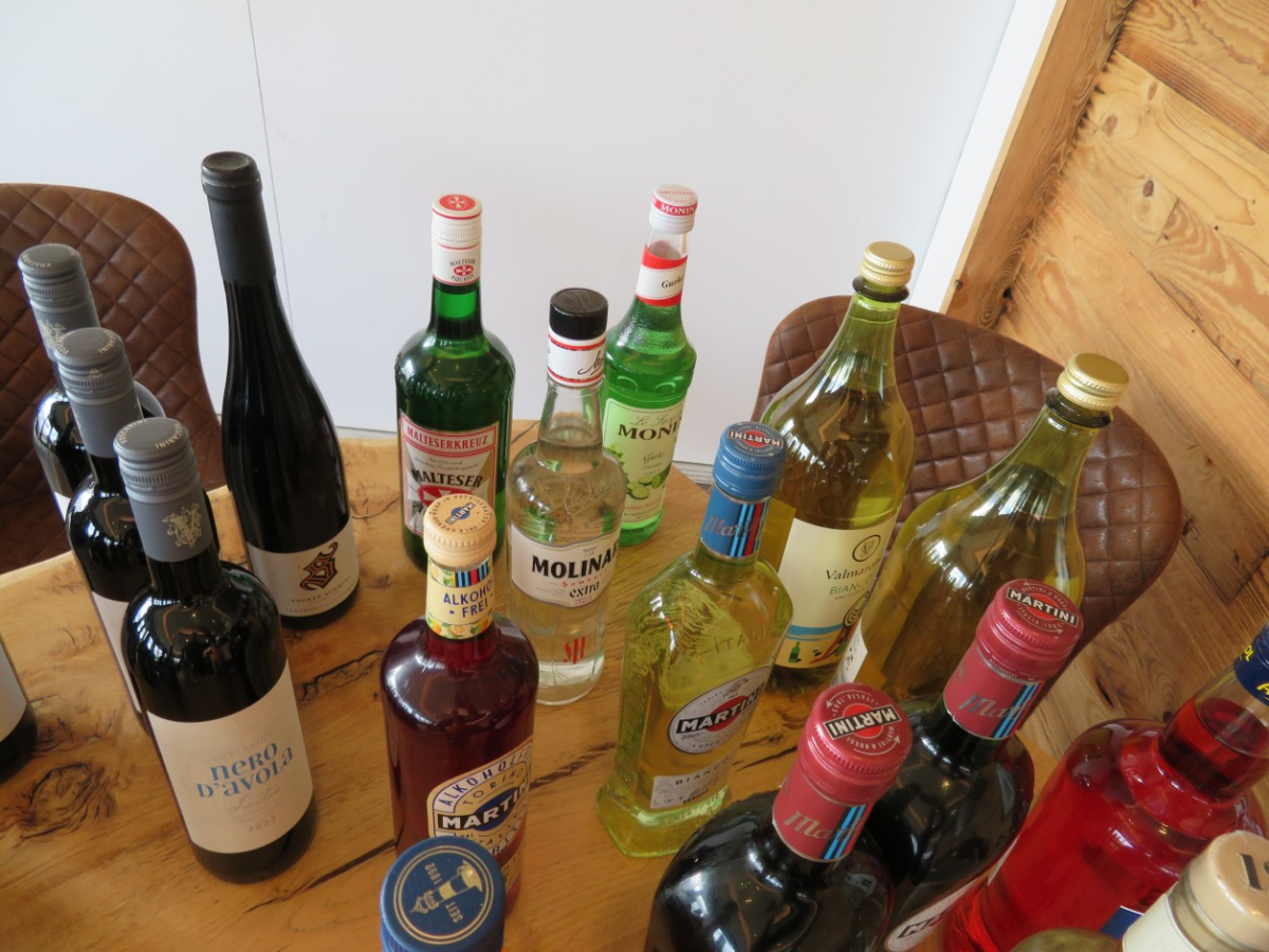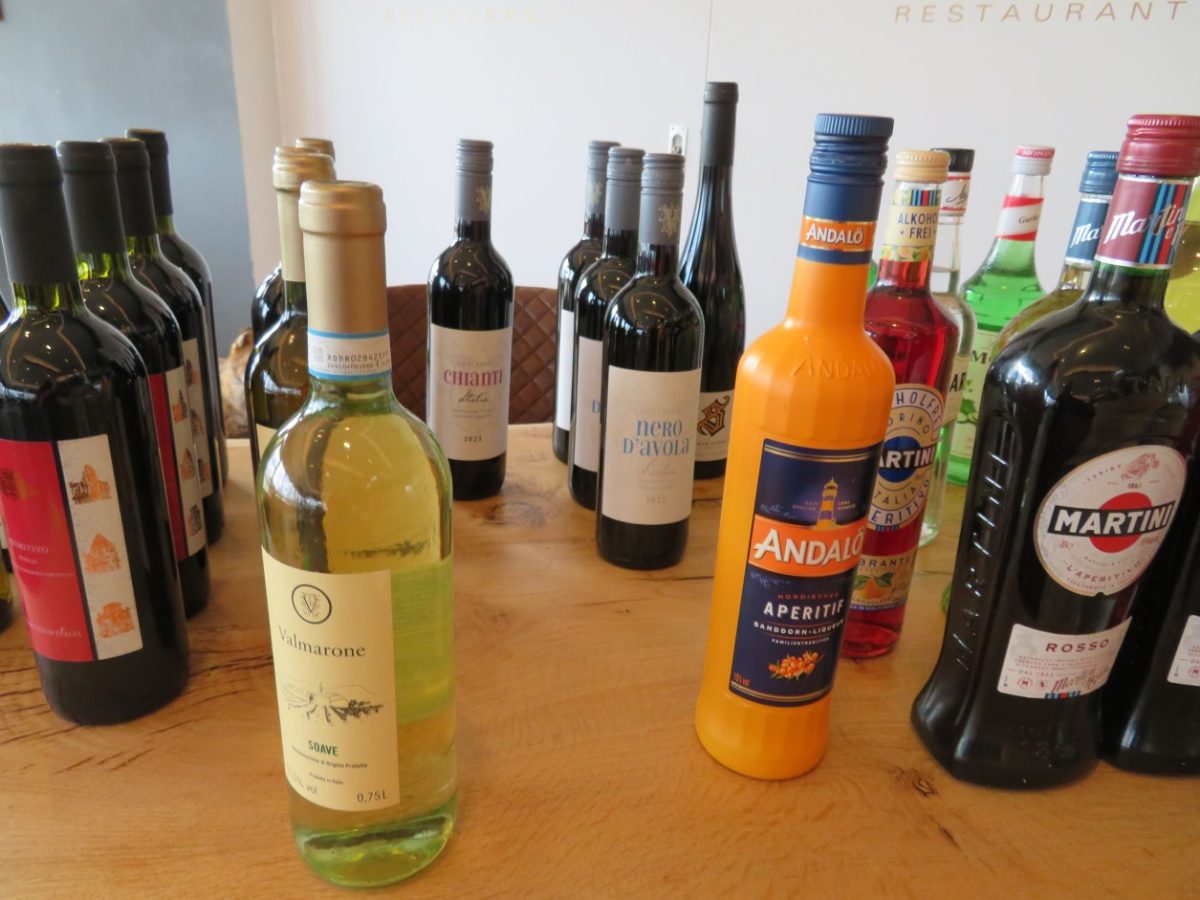 1 Posten Weine und Spirituosen, 26 Flaschen, bestehend aus: 2 x Schaumwein Secco Zero-Weingut Tobias Rickes, 4 x Primitivo Puglia, Italienischer Rotwein trocken, 4 x WeinValmarone ( 1 x Soave, 1 x Pinot Grigio, 2 x Merlot), 1 x Rotwein Voscarini Chianti 2023, 3 x Rotwein Voscarini Nero dAvola, 1 x Rotwein Volker Schmitt Cabernet Sauvignon, 1 Flasche Sandorn-Likör Andalö, 2 x Martini Rosso, 1 x Martini Bianco, 1 x Likör Ouzo 12, 1 x Aperol, 1 x Sambuca Molinari, 1 x Malteserkreuz, 1 x Sirup Monin Gurke, 2 x Wein Valmarone Bianco, 1 x Martini-alkoholfrei
