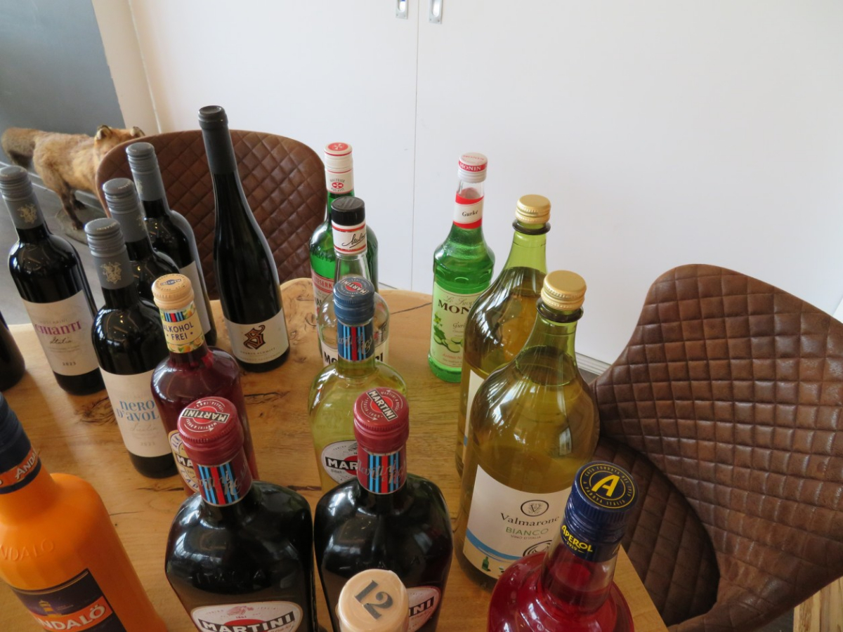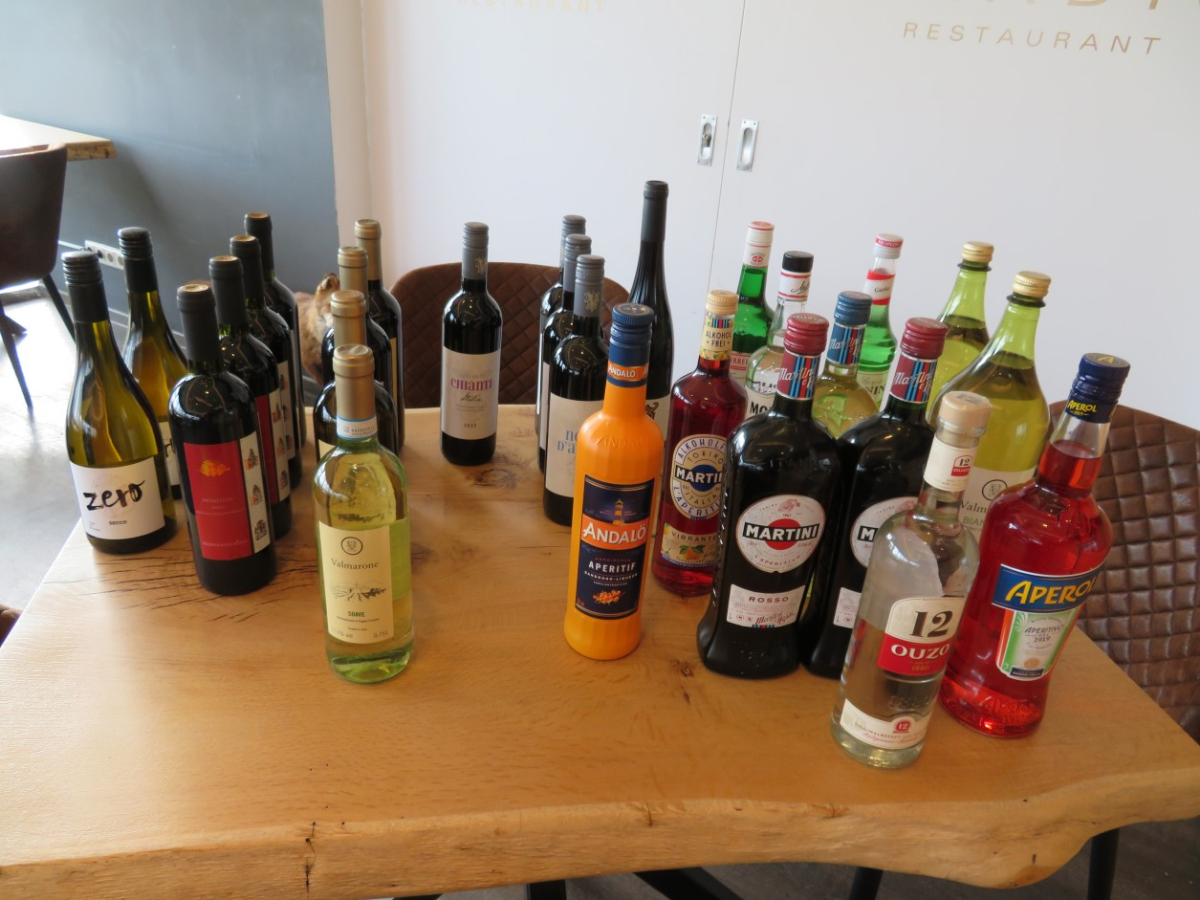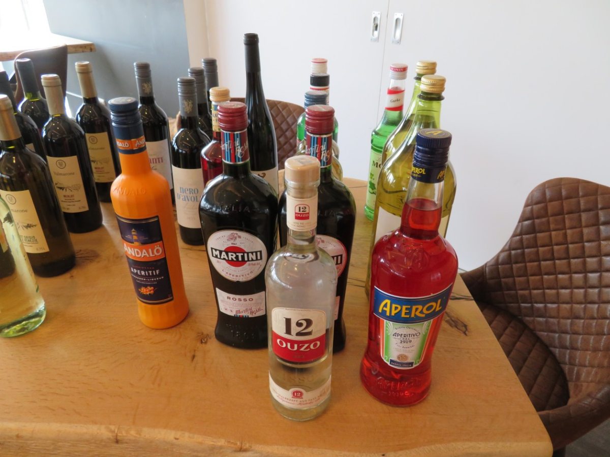 1 Posten Weine und Spirituosen, 26 Flaschen, bestehend aus: 2 x Schaumwein Secco Zero-Weingut Tobias Rickes, 4 x Primitivo Puglia, Italienischer Rotwein trocken, 4 x WeinValmarone ( 1 x Soave, 1 x Pinot Grigio, 2 x Merlot), 1 x Rotwein Voscarini Chianti 2023, 3 x Rotwein Voscarini Nero dAvola, 1 x Rotwein Volker Schmitt Cabernet Sauvignon, 1 Flasche Sandorn-Likör Andalö, 2 x Martini Rosso, 1 x Martini Bianco, 1 x Likör Ouzo 12, 1 x Aperol, 1 x Sambuca Molinari, 1 x Malteserkreuz, 1 x Sirup Monin Gurke, 2 x Wein Valmarone Bianco, 1 x Martini-alkoholfrei