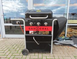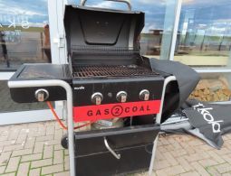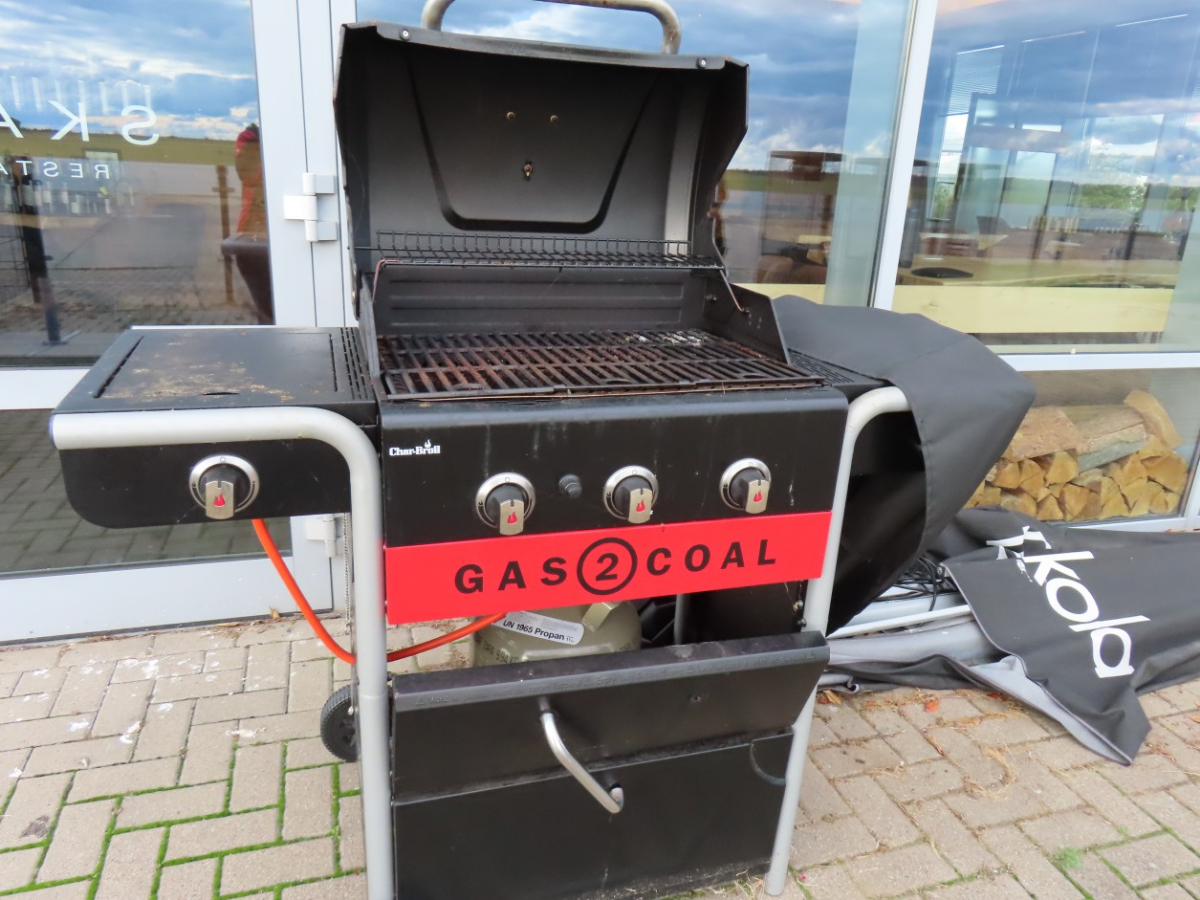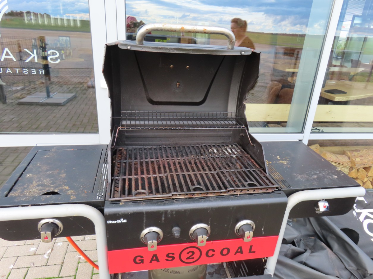 1 Hybridgrill, Fabr. Char-Broil, Typ Gas2Coal, Model 468302321, 13,6 kW, für Kohle & Gas, mit Seitenbrenner, stark verschmutzt