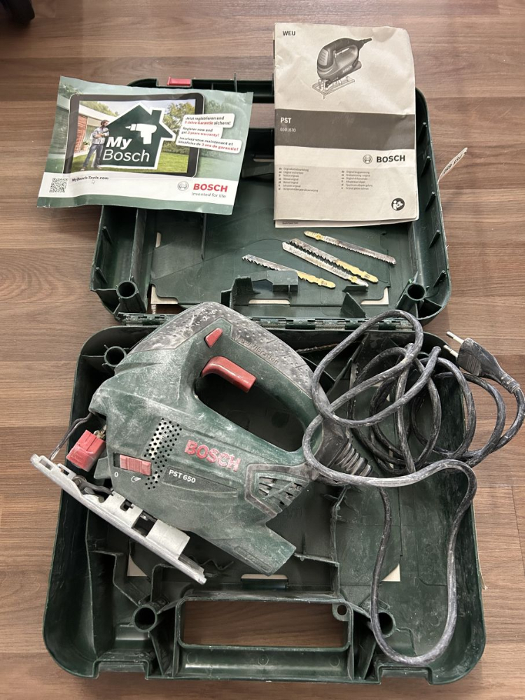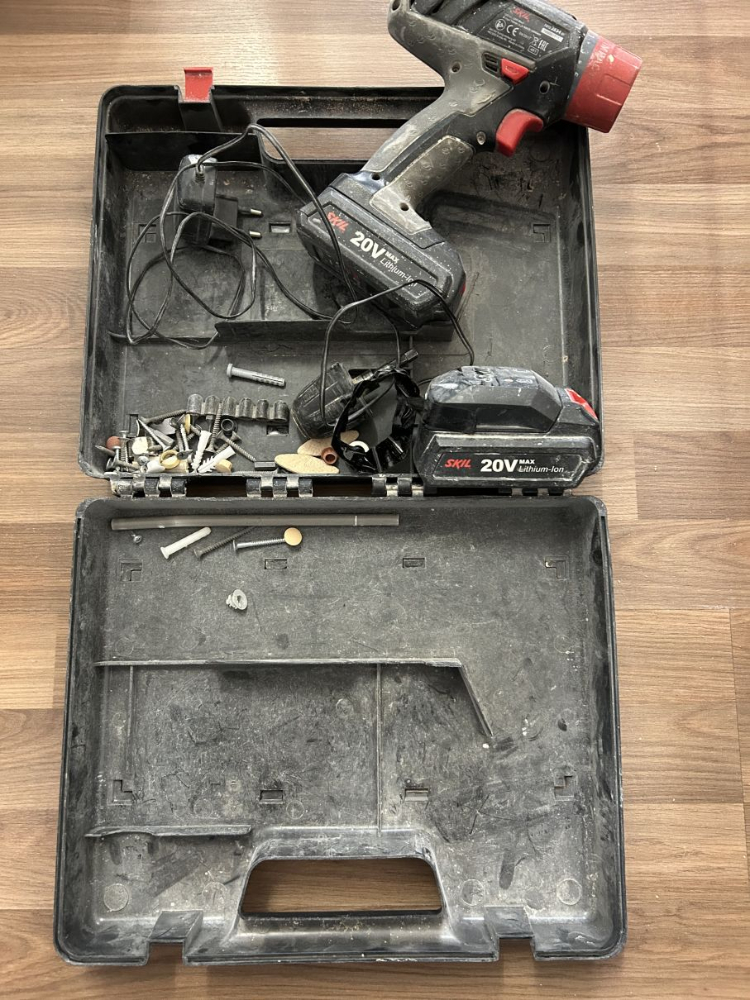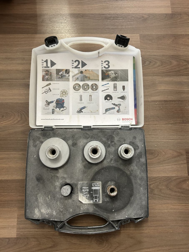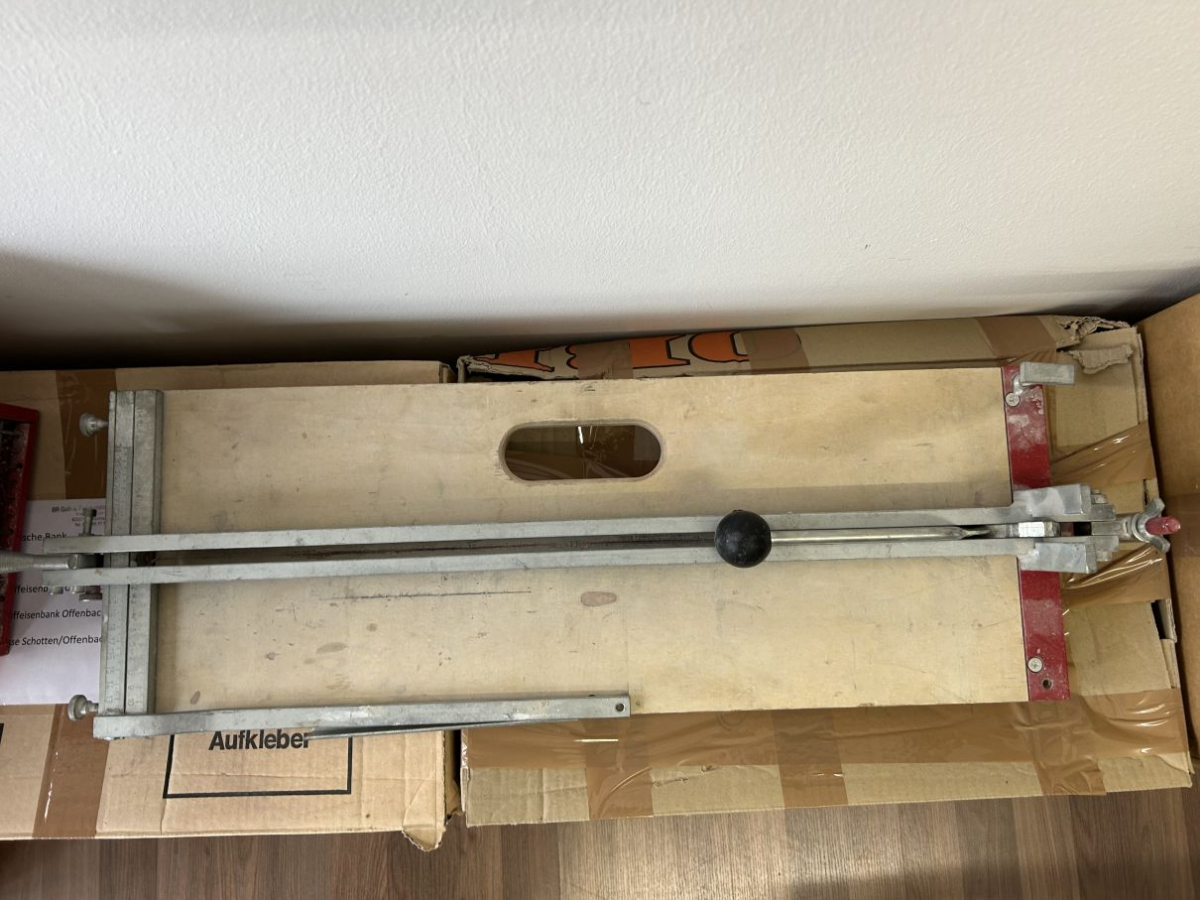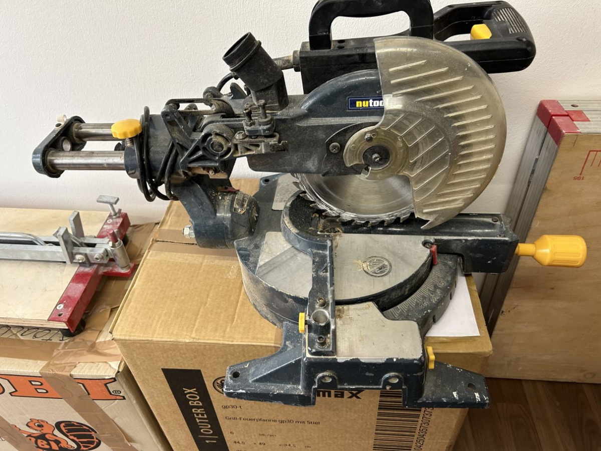 1x Sortiment Bohrkronen mit Führung 1x Schleifroller, Fab. Bosch, Typ: Texor 1x Bohrhammer, Fabr. Hilti, Typ: TE10, Kabel geflickt 1x Bohrhammer, Fabr. Bosch, Typ: GSB 20-2 RCE 1x Handkreissäge, Fabr. Bosch, Typ: PKS 16 Multi 2x Stichsäge, Fabr. Bosch, Typ: PST 650 1x Akkuschrauber, Fabr. SKIL, defekt 1x Sortiment an Bohrkronen, Fabr. Hawera und Fabr. Bosch 1x Bau-Laser, Fabr. Bosch, Typ: Professional GLL 3 - 80 -C im Makita Koffer 1x Mauernutfräse, Fabr. Toolson, Typ: PRO MF 1320 1x Mini-Kreissäge, Fabr. Matrix, Typ MCS 500 - 1 Mini 1x Teppichstreifenschneider, Fabr. Wolff 1x Tapeziertisch, Fabr. Euroline 1x Tapeziergerät, Fabr. Tape Fix inkl. div. Malerzubehör 1x Kappsäge, Fabr. Nutool, Typ: NTRAMS 1700 Kap 1x Fliesenschneider für Fliesen bis 60 cm 1x Heizlüfter, Fabr. Voltomat, Typ: HEATING 2KW 1x Fliesenschneider, Fabr. Heka Magic - Cut 640mm 1x Industriesauger, Fabr.: Kärcher WD 4, stark verschmutzt 1x Aktenvernichter, Fabr. Olympia, Typ: PS 63c 1x Monitor, Fabr. HP, Typ: x27a , 70cm-Diagonale 1x Router, Fabr. FritzBox, Typ: 7590 1x Tastatur und Maus, Fabr. Logi 1x Drucker, Fabr. HP, Typ: Office Jet Pro 6960