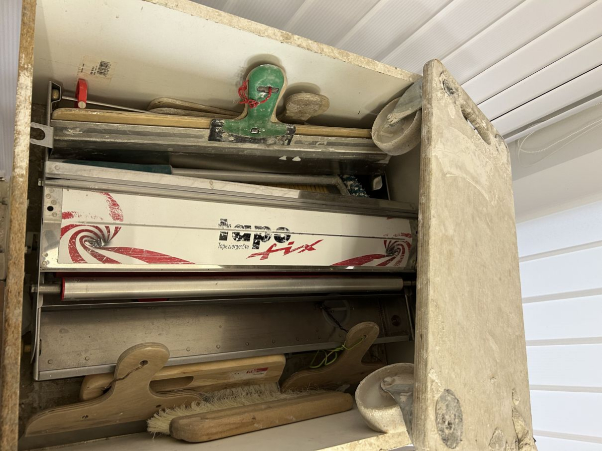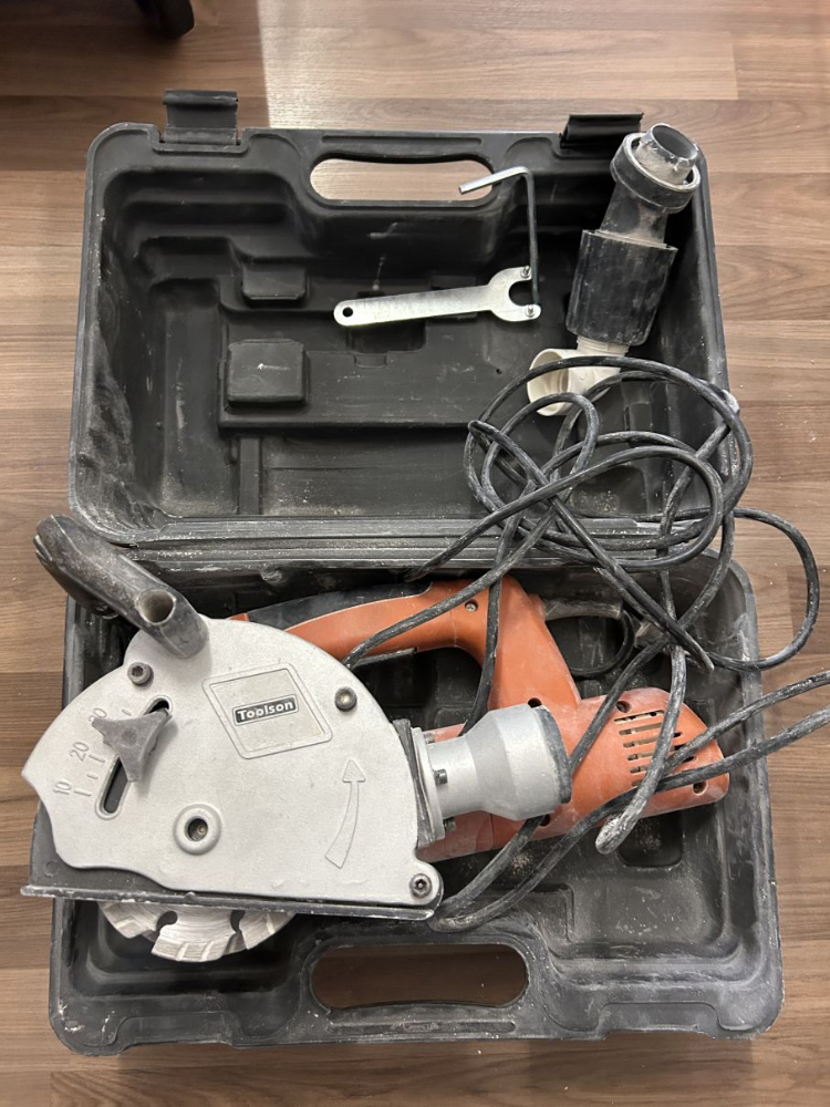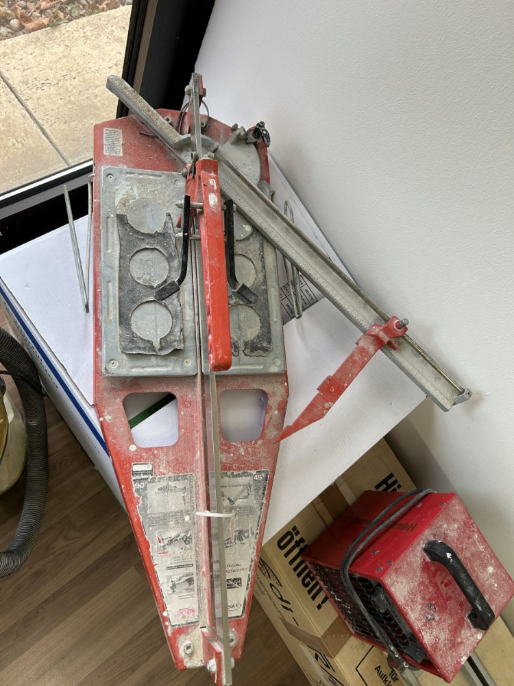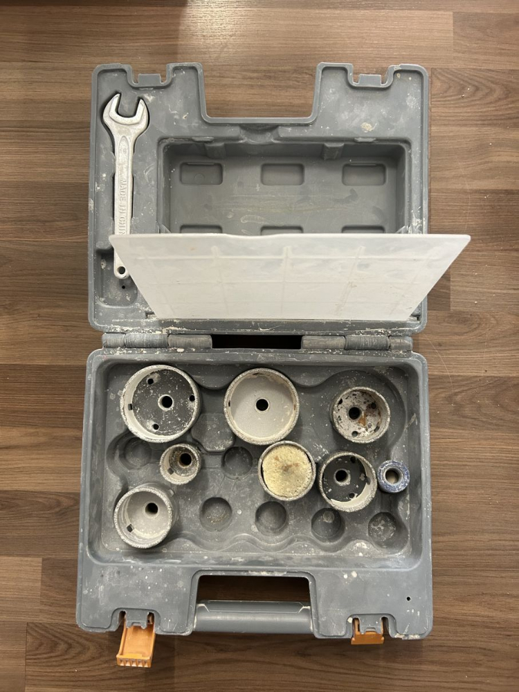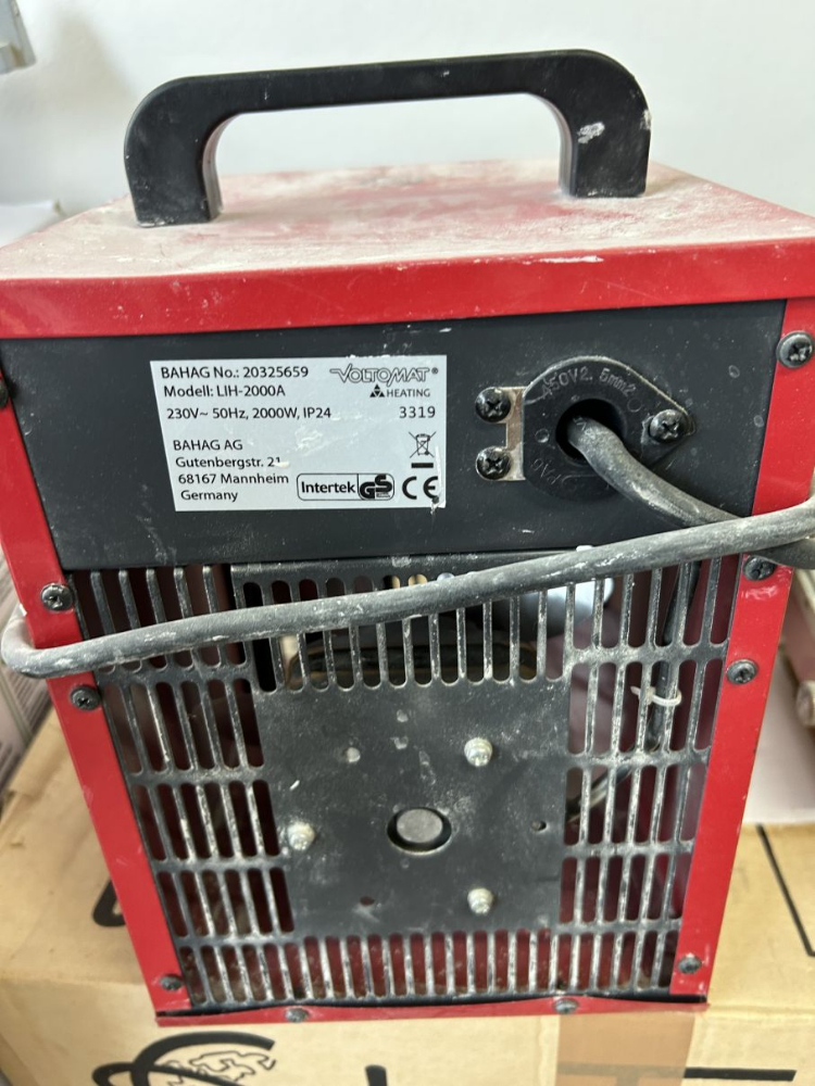 1x Sortiment Bohrkronen mit Führung 1x Schleifroller, Fab. Bosch, Typ: Texor 1x Bohrhammer, Fabr. Hilti, Typ: TE10, Kabel geflickt 1x Bohrhammer, Fabr. Bosch, Typ: GSB 20-2 RCE 1x Handkreissäge, Fabr. Bosch, Typ: PKS 16 Multi 2x Stichsäge, Fabr. Bosch, Typ: PST 650 1x Akkuschrauber, Fabr. SKIL, defekt 1x Sortiment an Bohrkronen, Fabr. Hawera und Fabr. Bosch 1x Bau-Laser, Fabr. Bosch, Typ: Professional GLL 3 - 80 -C im Makita Koffer 1x Mauernutfräse, Fabr. Toolson, Typ: PRO MF 1320 1x Mini-Kreissäge, Fabr. Matrix, Typ MCS 500 - 1 Mini 1x Teppichstreifenschneider, Fabr. Wolff 1x Tapeziertisch, Fabr. Euroline 1x Tapeziergerät, Fabr. Tape Fix inkl. div. Malerzubehör 1x Kappsäge, Fabr. Nutool, Typ: NTRAMS 1700 Kap 1x Fliesenschneider für Fliesen bis 60 cm 1x Heizlüfter, Fabr. Voltomat, Typ: HEATING 2KW 1x Fliesenschneider, Fabr. Heka Magic - Cut 640mm 1x Industriesauger, Fabr.: Kärcher WD 4, stark verschmutzt 1x Aktenvernichter, Fabr. Olympia, Typ: PS 63c 1x Monitor, Fabr. HP, Typ: x27a , 70cm-Diagonale 1x Router, Fabr. FritzBox, Typ: 7590 1x Tastatur und Maus, Fabr. Logi 1x Drucker, Fabr. HP, Typ: Office Jet Pro 6960