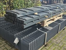 1 Komplettset-Zaunpaket, 75 m, RAL7016 anthrazitgrau, Höhe: 2030 mm, 30 Stück Doppelstabmatte B 2510 x H 2030 mm 6/5/6 mm MW 50 x 200 mm RAL7016, 31 Stück Zaunpfosten 60 x 40 x 2600 mm RAL7016, Bodeneinstand 600 mm, 31 Stück Hakenkappe, 124 Stück U-Bügelsets