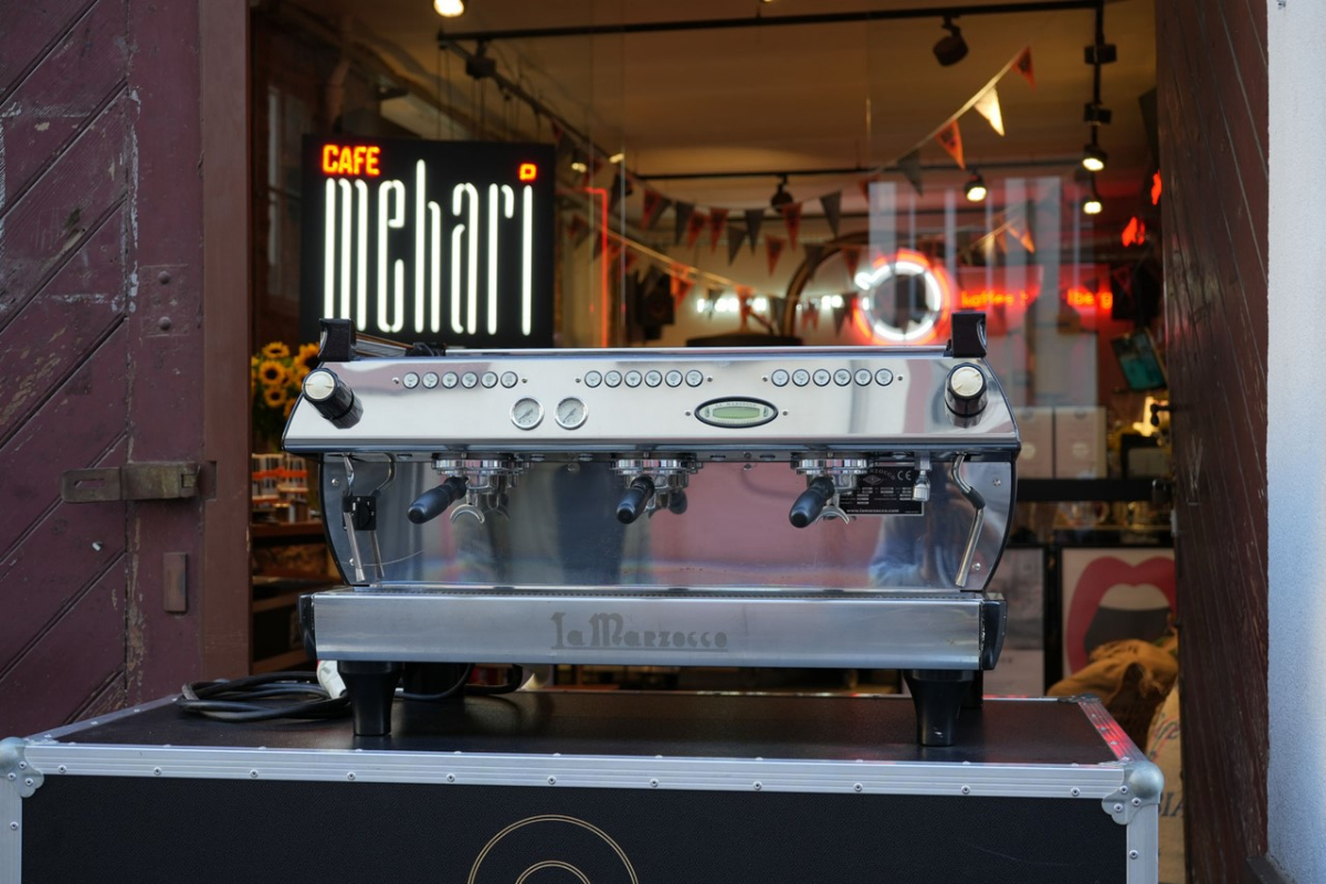1 Kaffeemaschine, Fabr.: La Marzocco, dreigruppig mit Zubehör und Flightcase