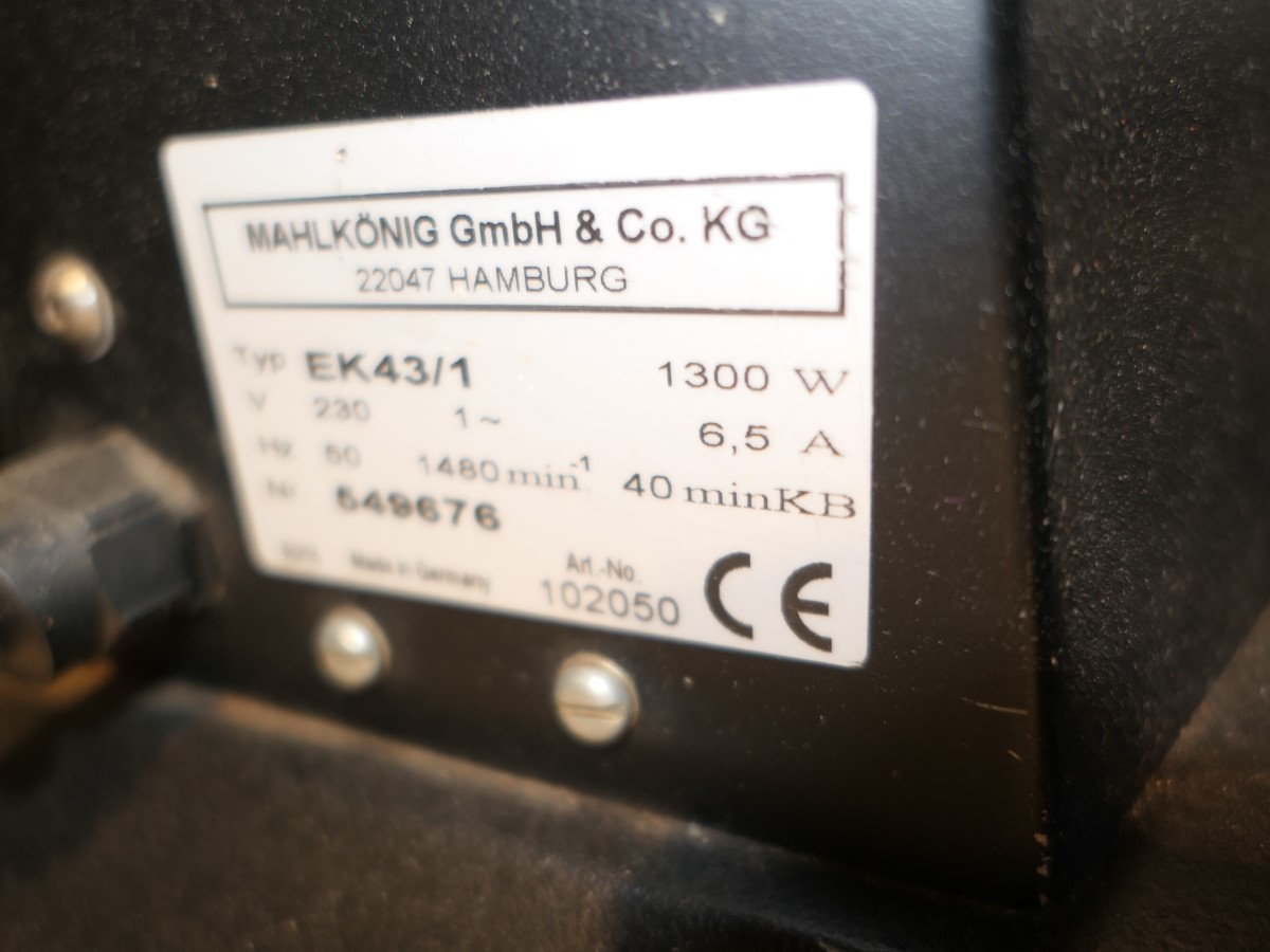 1 Kaffeemühle, Fabr.: Mahlkönig, Typ: EK43/1, Maschinennummer: 549676