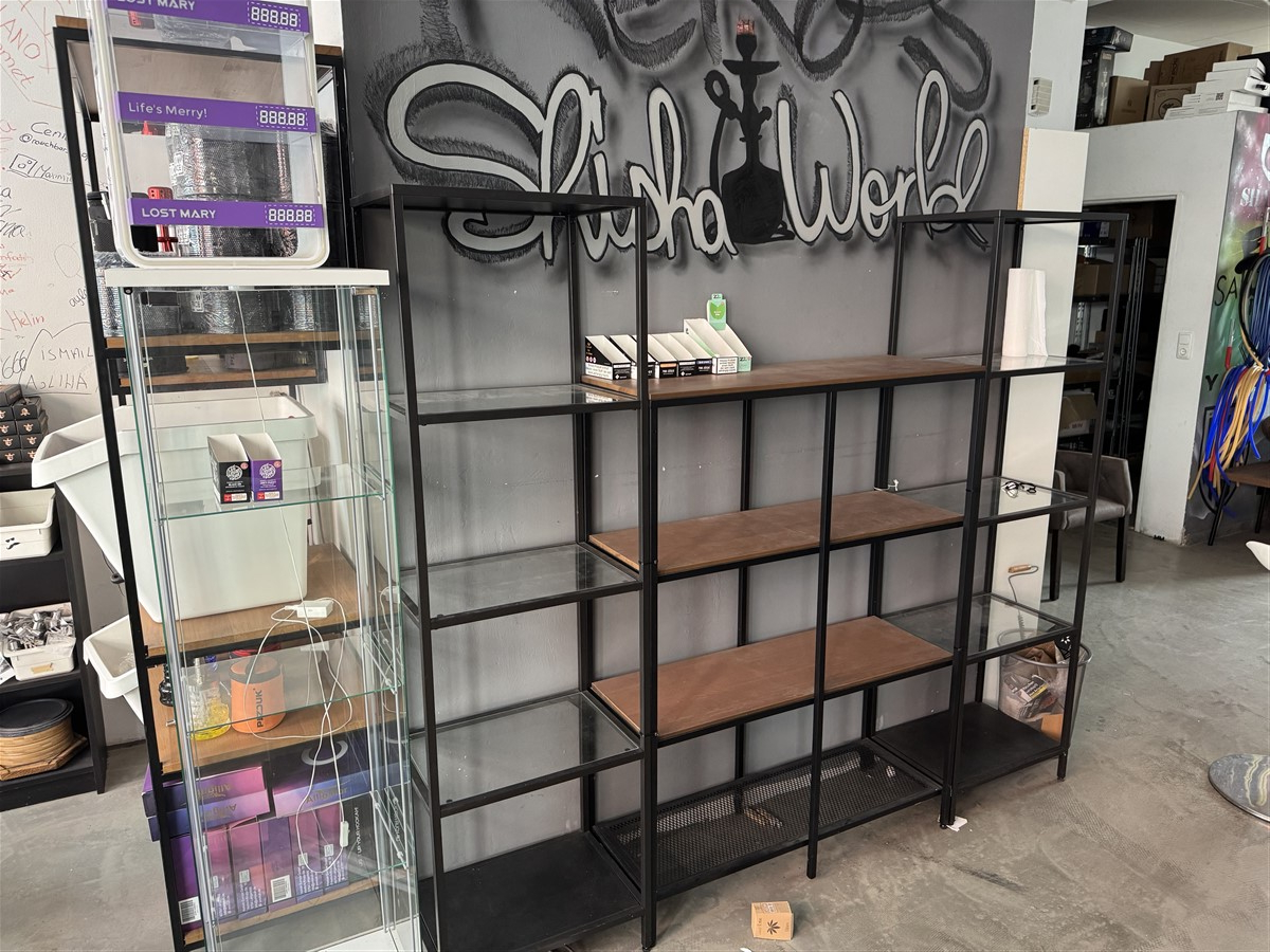 1 Warenregale, Holzoptik, schwarz