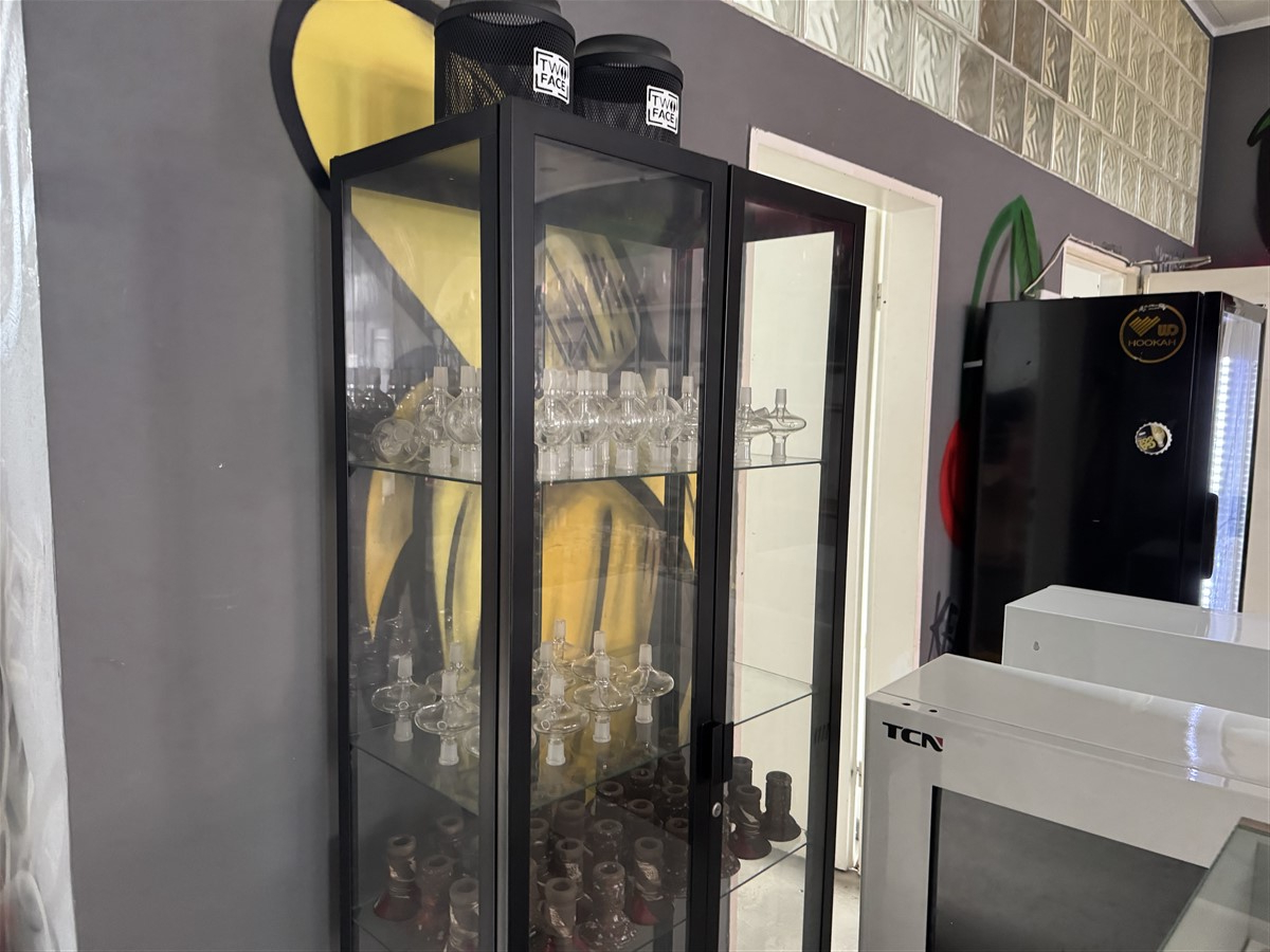1 Vitrine, ca. 2,00 m x 0,80 m, schwarz