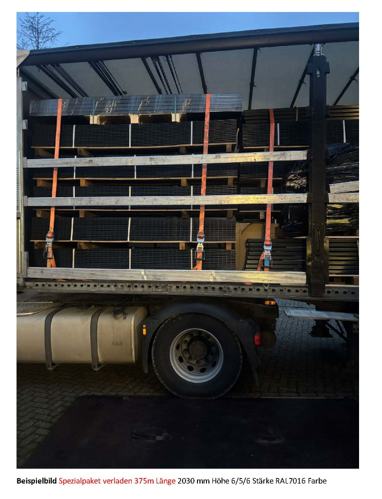 1 Spezialpaket - Komplettset-Zaunpaket, 375 m, Höhe: 2030 mm, Stärke 6/5/6 mm, verzinkt + RAL7016 anthrazitgrau beschichtet, 150 Stück Doppelstabmatte B2510 x H2030 mm 6/5/6 mm MW 50 x 200 mm RAL7016, 151 Stück Zaunpfosten 60 x 40 x 2 x 2200 mm mit Bodeneinstand ca. 600 mm zum Einbetonieren, 151 Stück Hakenkappe (1 Stück pro Posten), 453 Stück U-Bügelsets (3 Stück pro Pfosten)