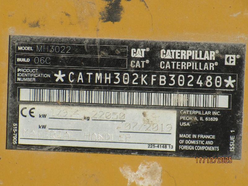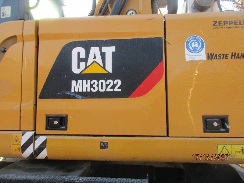 Umschlagbagger, Fabr. Caterpillar, Typ MH3022, Ident-Nr. CATMH302KFB302480, Erstzulassung 07/2019, 129,4 kW, Diesel, 2-Achsen, Betriebsstunden 11.423 h, Gesamtgewicht 22050 kg, Räder vorne beidseitig verschlissen, Hydraulikeinheit leicht Ölfeucht