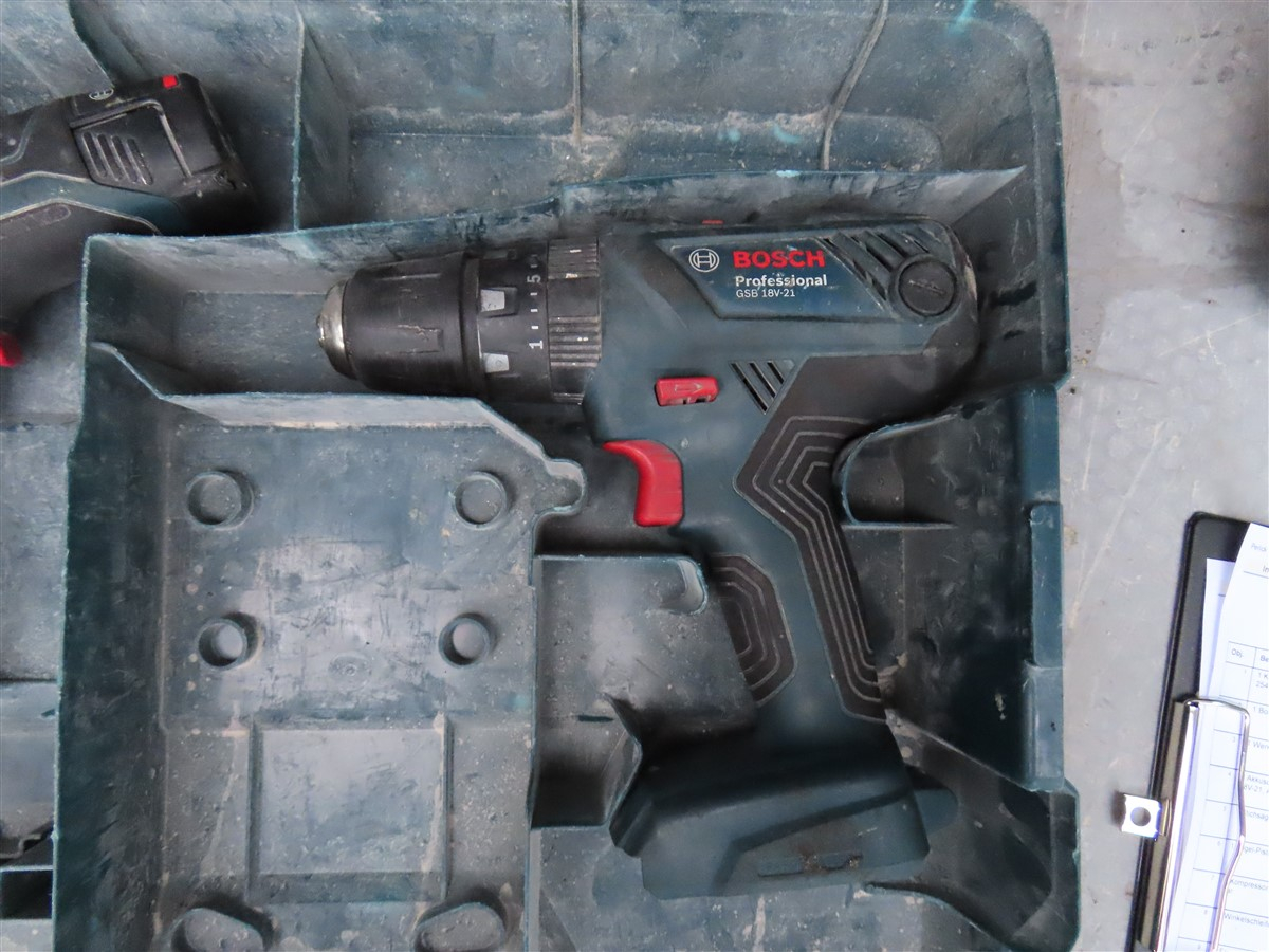 2 Akkuschrauber, Fabr.: Bosch, Typ: GSR 12V-15, GSB 18V-21, Akku und Ladegerät fehlen