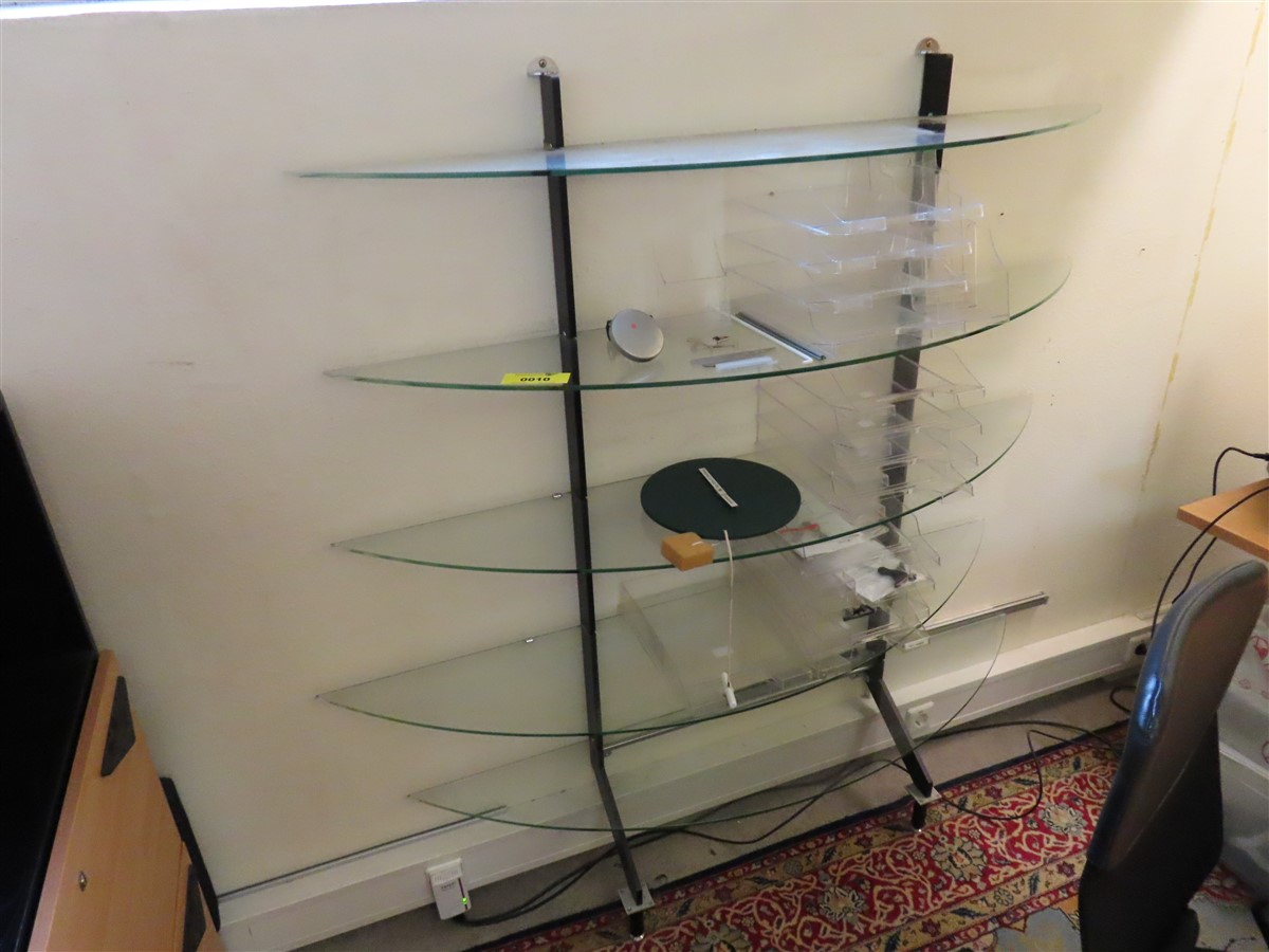 1 Regal, wandmontiert, 5 Einlegeböden, Glas, halbrund