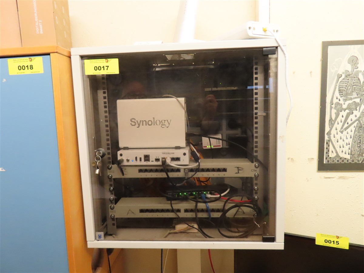 1 Netzwerkschrank, mit NAS, Fabr. Synology, Firewall, Fabr. Sophos, Typ: SG105 Rev. 3 Firewall Appliance, sowie 2x Patchpanel (16 Port), Fabr. Digitus, Typ: C5e, Netzwerkswitch, Fabr. Zyxel, Typ: GS1900-10HP, Outdoor-Router, Fabr. Zyxel, Typ: NR7302 5G