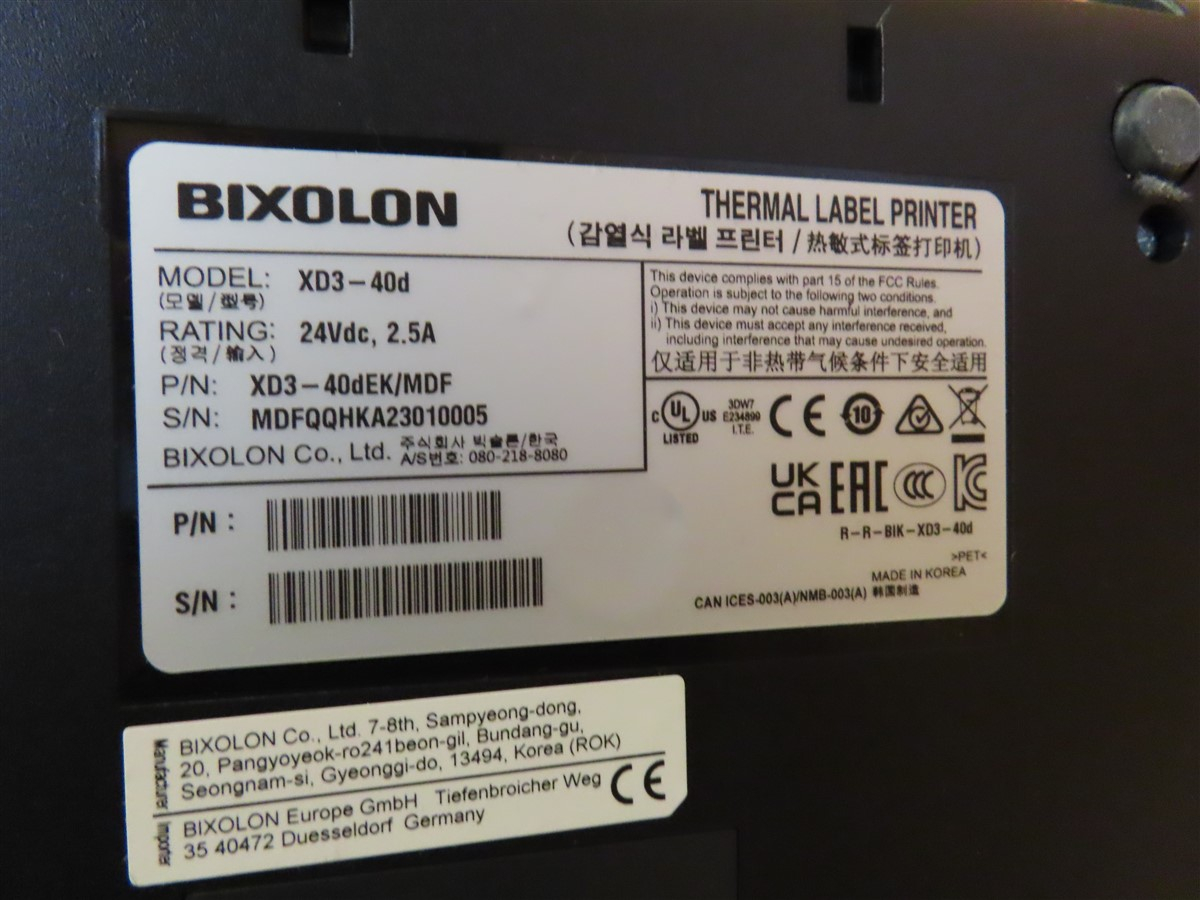 1 Etikettendrucker, Fabr. Bixolon, Typ: XD3-40d, Seriennr.: MDFQQHKA23010005