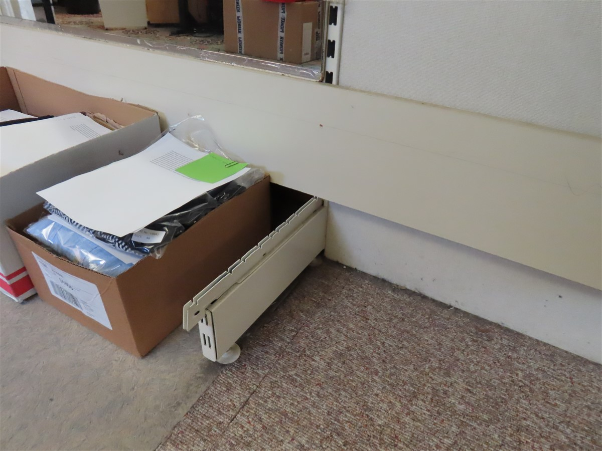 1 Regale, modular, wandmontiert, mit Kleiderbügelaufhängebögen sowie Einlegeböden ca. 3,00 m x 2,20 m, mit Spiegelfronten
