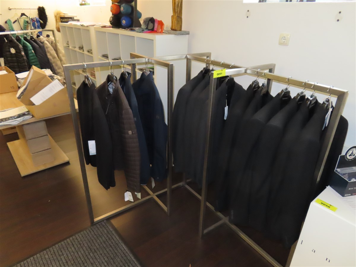 2 Garderobenständer, Edelstahl, Kantrohr, Höhe ca. 1,30 m