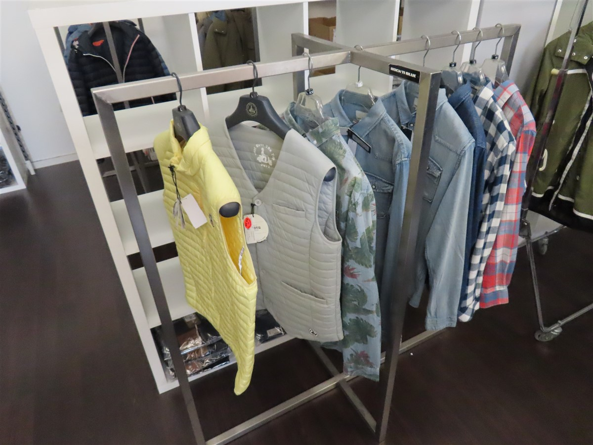 3 Garderobenständer, Edelstahl, Kantrohr, Höhe ca. 1,30 m