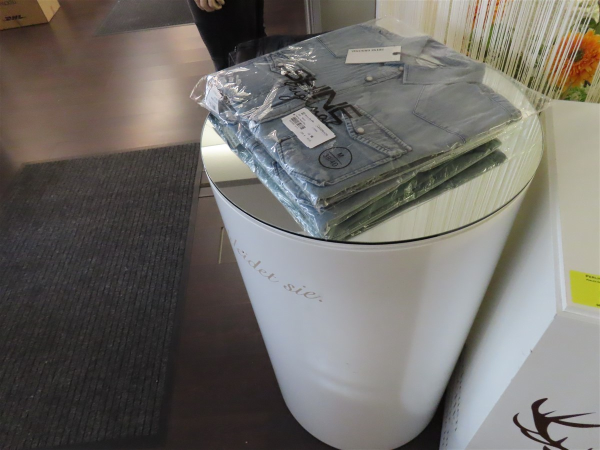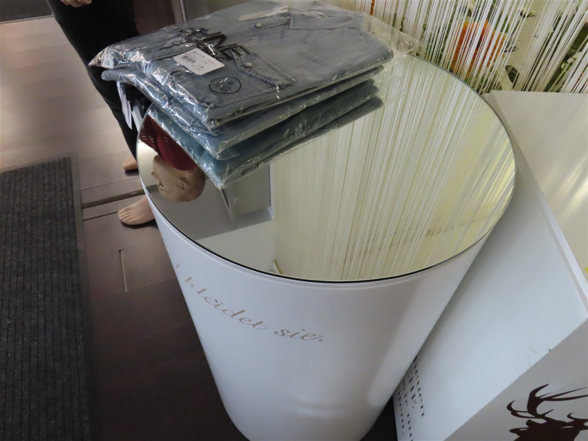 1 Posten Ausstelltische, verschiedene Ausführungen, quadratisch und rund, mit 1x Spiegelfläche auf runden Tisch, 4 Stück