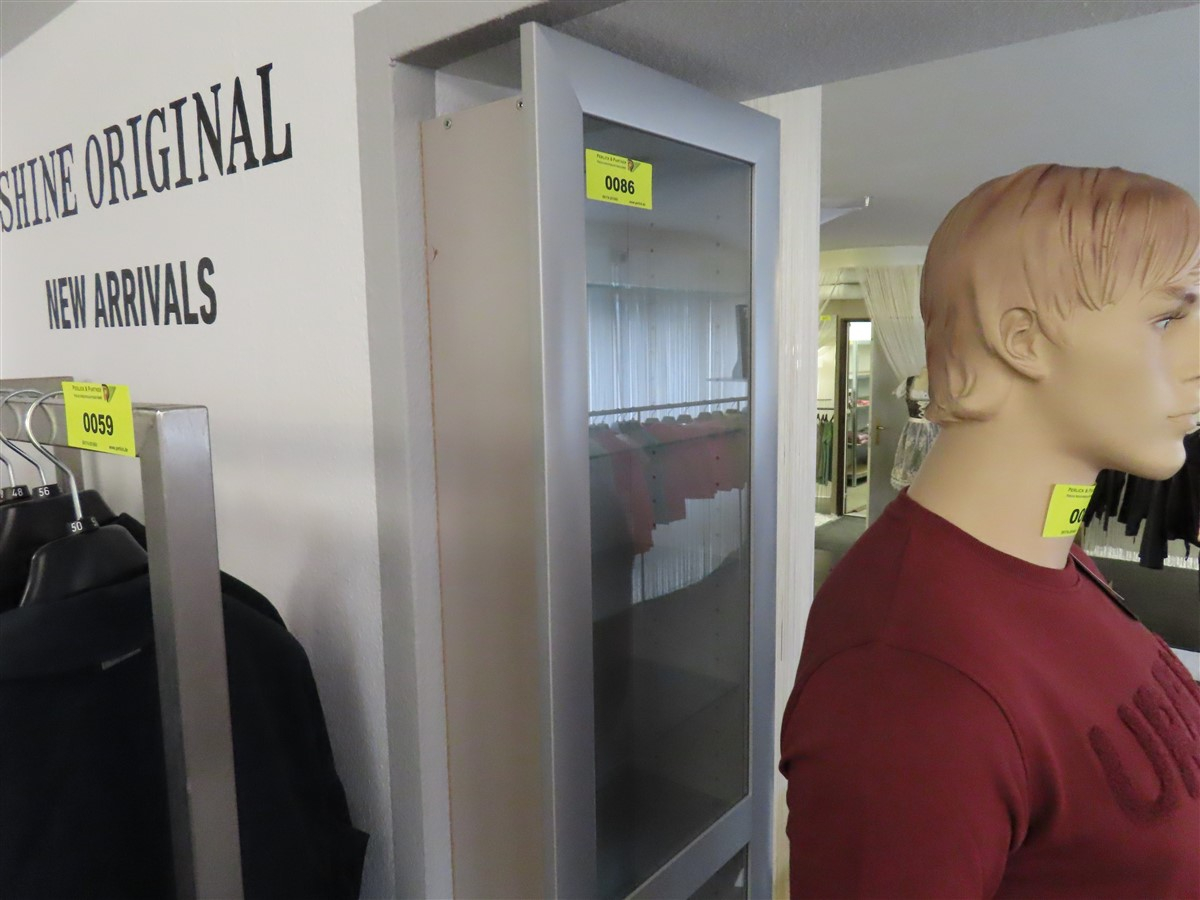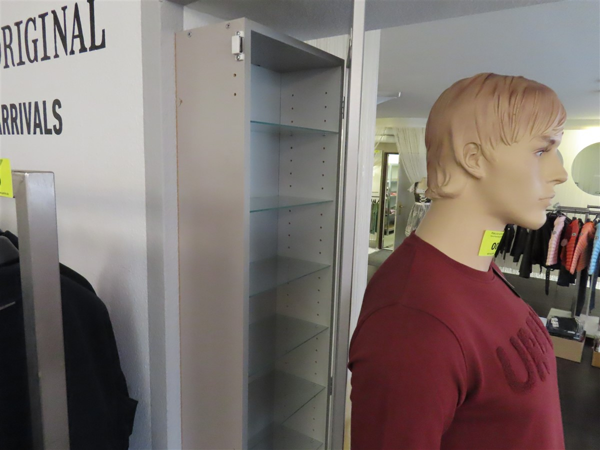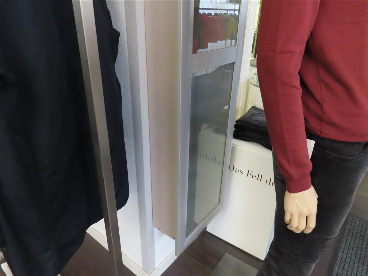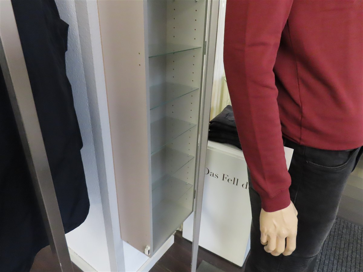 1 Wandvitrine, silbern, ca. 0,4 m x 1,5 m