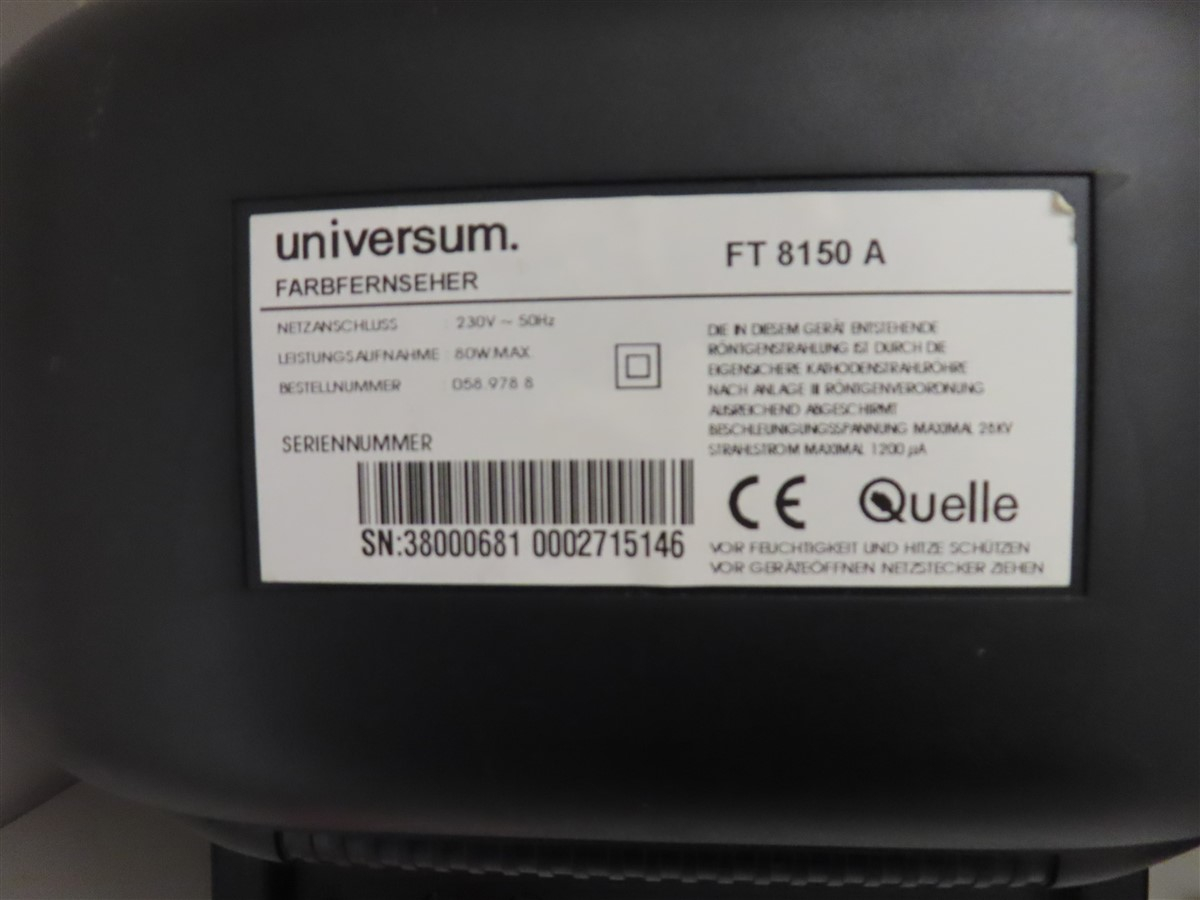 1 Röhrenbildschirm, Fabr. Universum, Typ: FT8150A, mit VHS-Recorder, Fabr. Sony, Typ: SLV-SE650, inkl. Fernbedienungen