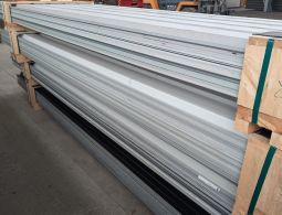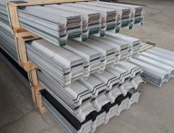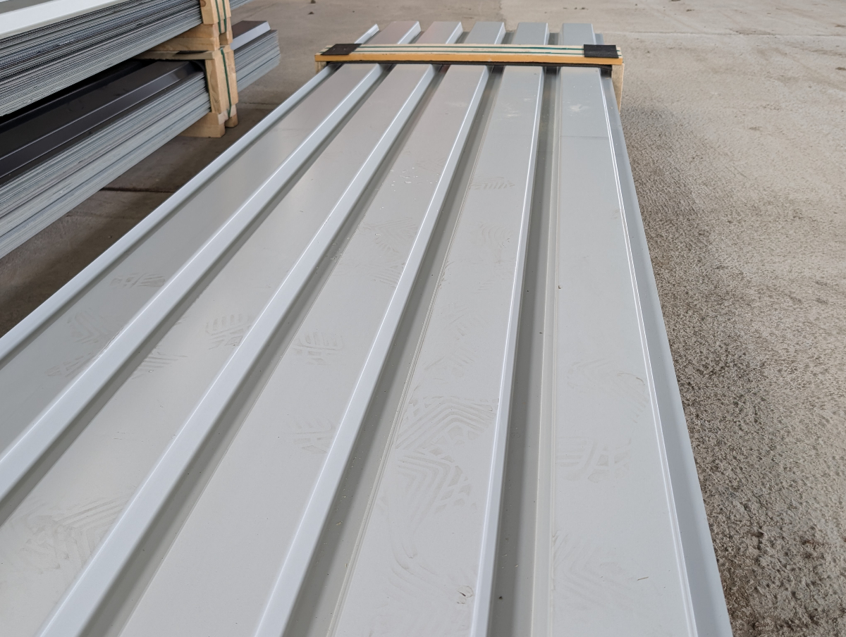 1 Posten Trapezbleche, 50 Stück, Länge: 450 cm, Profilhöhe: 40 mm, Deckbreite: 91,5 cm, Tafelbreite: 95,5 cm, 2. Wahl, farblich unsortiert, unterschiedliche Stärken von 0,63 bis 1,00 mm, Korrosionsschutz und Farbbeschichtung, beidseitig mit Aluzink, teilweise mit Vlies. - Kratzer, kleine Dellen und Transportspuren möglich