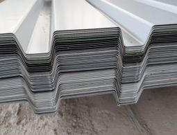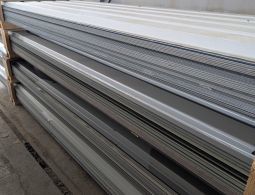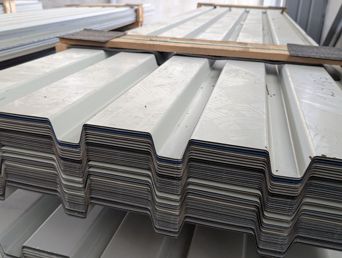 1 Posten Trapezbleche, 50 Stück, Länge: 450 cm, Profilhöhe: 40 mm, Deckbreite: 91,5 cm, Tafelbreite: 95,5 cm, 2. Wahl, farblich unsortiert, unterschiedliche Stärken von 0,63 bis 1,00 mm, Korrosionsschutz und Farbbeschichtung, beidseitig mit Aluzink, teilweise mit Vlies. - Kratzer, kleine Dellen und Transportspuren möglich