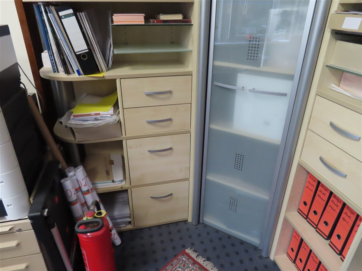 1 Schrank-Eckkombination mit Glasfront und Lagerrondell