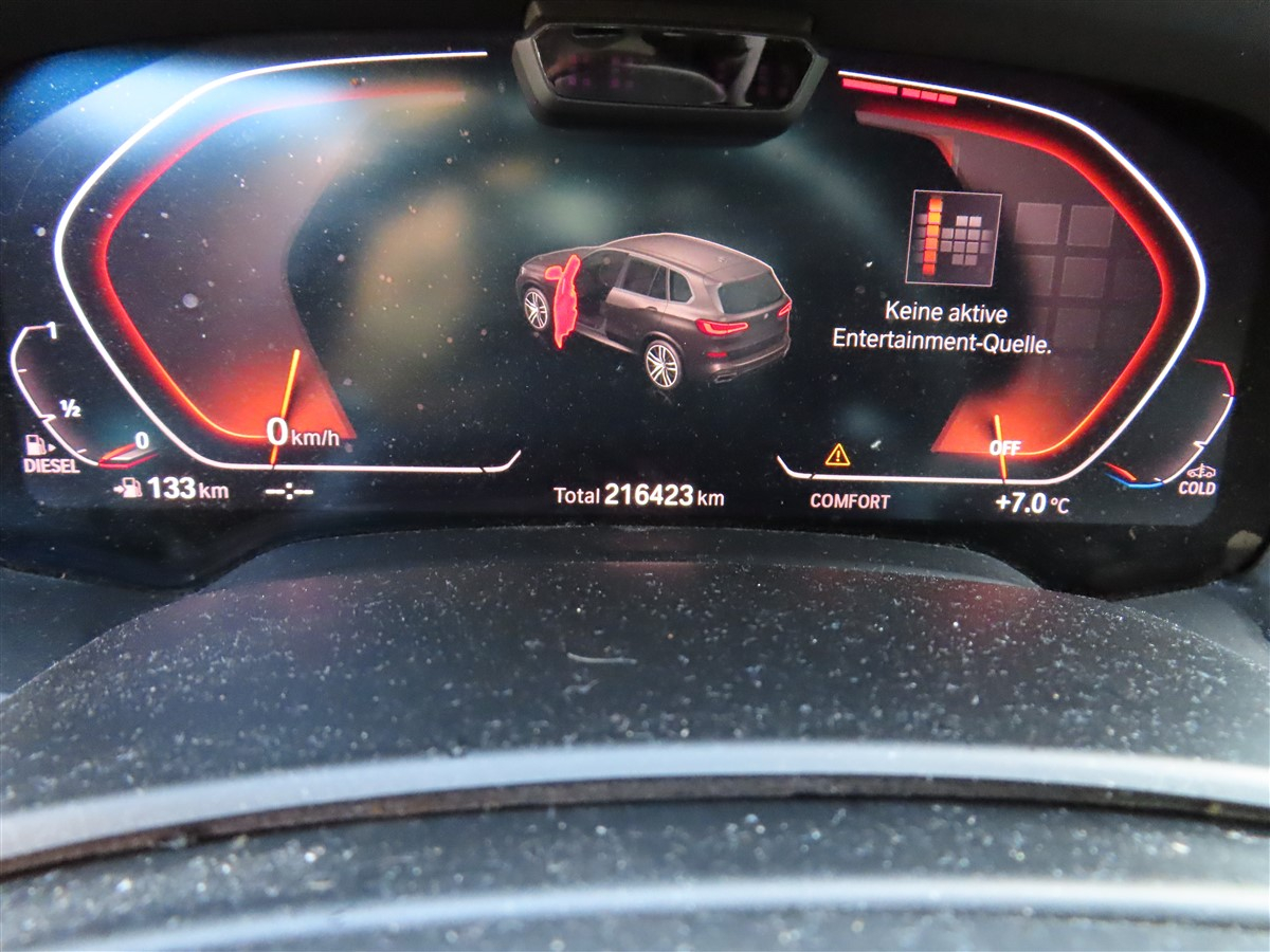 PKW, Fabr.: BMW, Typ: X5 xDrive30d, HU: 05/26, EZ: 07.02.2019, Fahrgestell-Nr. WBACV61070LJ73302, Euro 6, Diesel, 195 kW, abgelesener km-Stand: 216.423 km, Warnlmeldung im Kombinstrument (Angabe Vobesitzer: möglicher Turboschaden), Kratzer Fahrtrichtung rechts/hinterer Radkasten, Gebrauchsspuren(kleine Dellen und Kratzer) rund ums Fahrzeug, Felgen diverse Parkschäden
