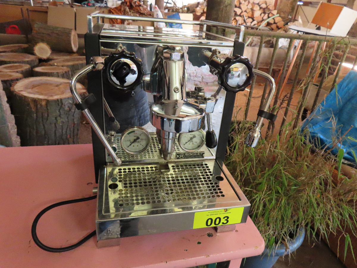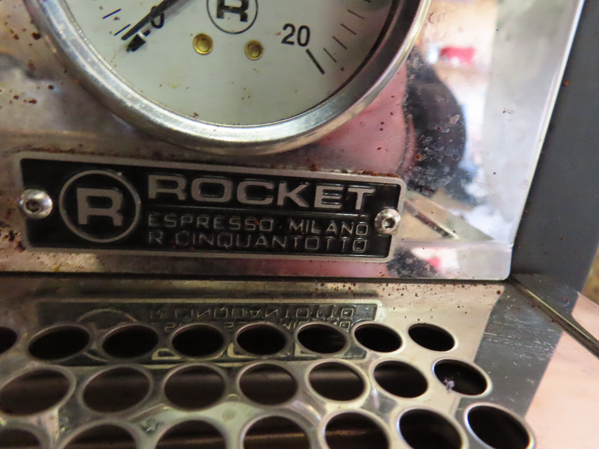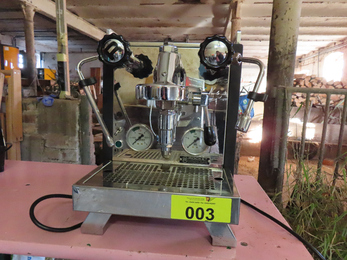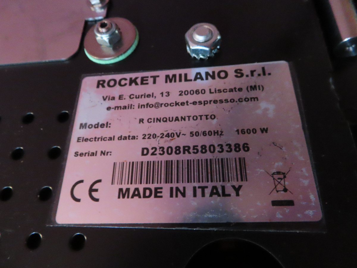 1 Espressomaschine, Fabr. Rocket Milano, Modell R Cinquantotto, Serien-Nr. D2308R580336, 1600 W, 1 Siebträger mit 2er Auslauf, mit 1 Aluminiumtamper