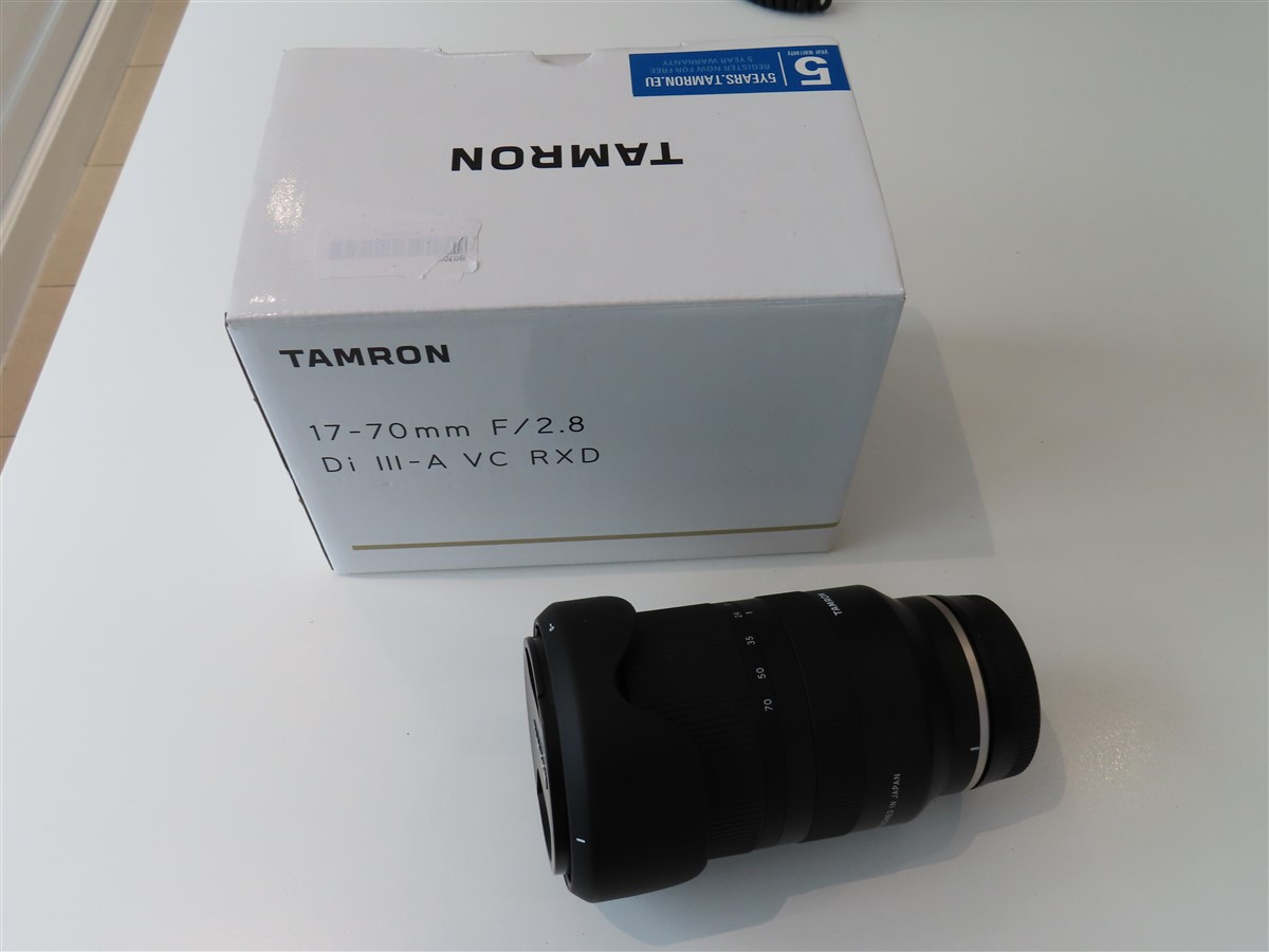 1 Kamera-Objektiv, Fabr. Tamron, Typ 17–70 mm F/2.8 Di III-A VC RXD, Brennweite 17 - 70 mm, Autofocus, integrierter Bildstabilisator, geeignet für Sony E (APS-C), Fujifilm X